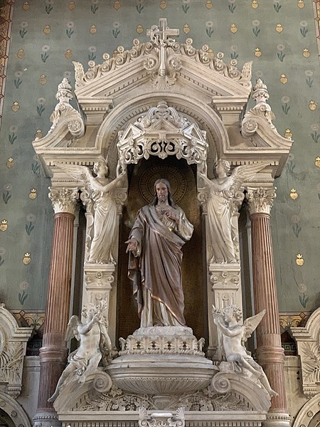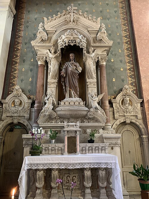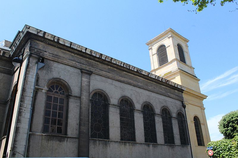 Le programme iconographique des vitraux, réalisé par l’atelier lyonnais de Jean-Baptiste Barrelon entre 1858 et 1878 et installé à partir des années 1860, rythme la nef. Sur le côté gauche figurent notamment le témoignage et la lapidation d’Étienne, des allégories de l’Église comme salut des peuples et du siège épiscopal comme défenseur de la cité, des scènes liées aux conciles (Concile de Jérusalem et Concile Vatican I), le baptême de Clovis ainsi que des représentations de saint Louis et de saint Vincent. Sur le côté droit se succèdent la Pentecôte, la conversion de Paul sur le chemin de Damas, la remise des clefs à saint Pierre et la première prédication à Jérusalem, des épisodes de la naissance, de la mort et de la résurrection du Christ, des thèmes eucharistiques (Emmaüs, l’Agneau immolé, le pélican) et un cycle de la Vierge comprenant la déclaration du dogme de l’Immaculée Conception (1854), une Pietà et un Couronnement.