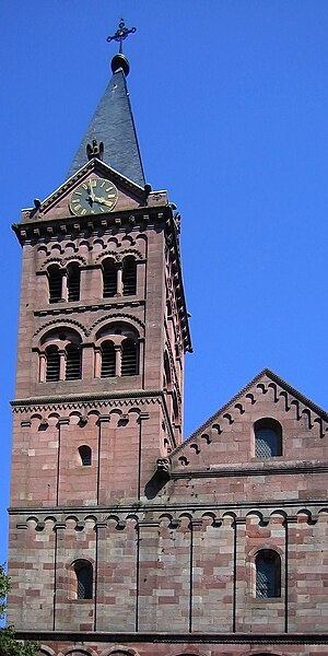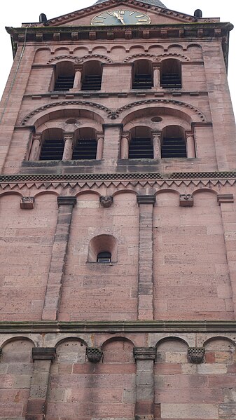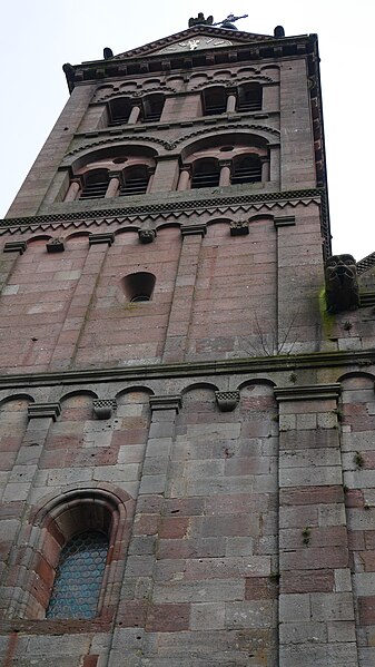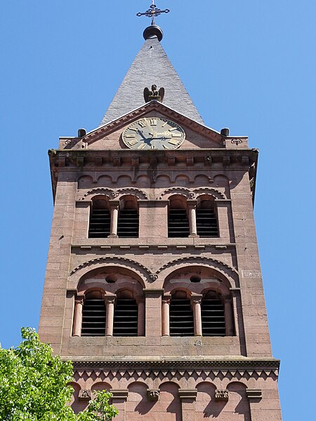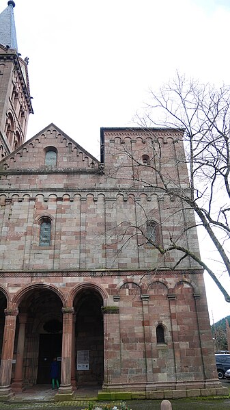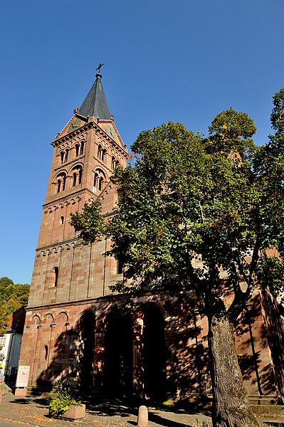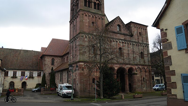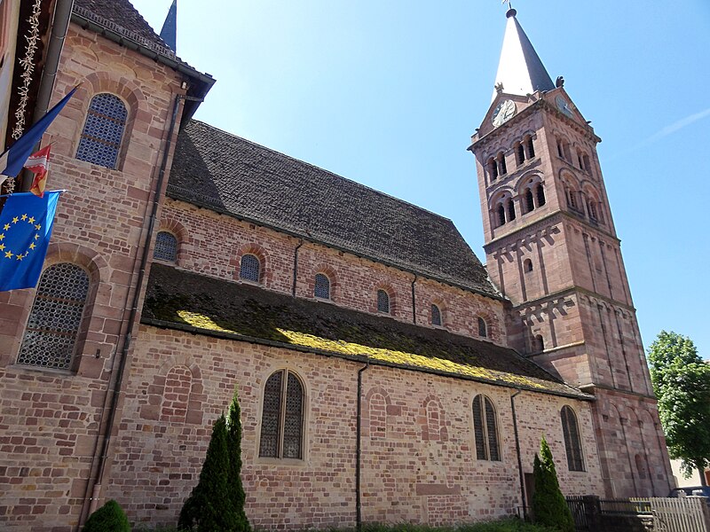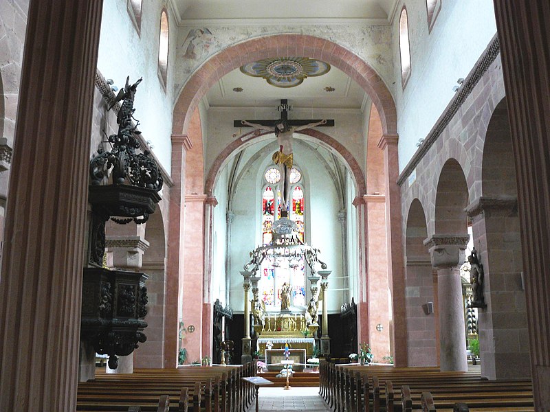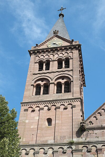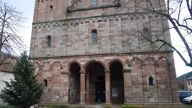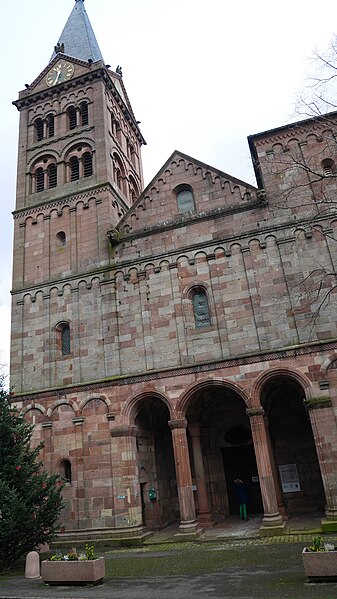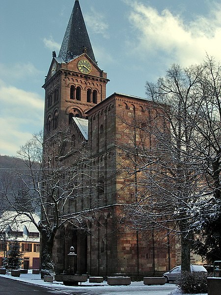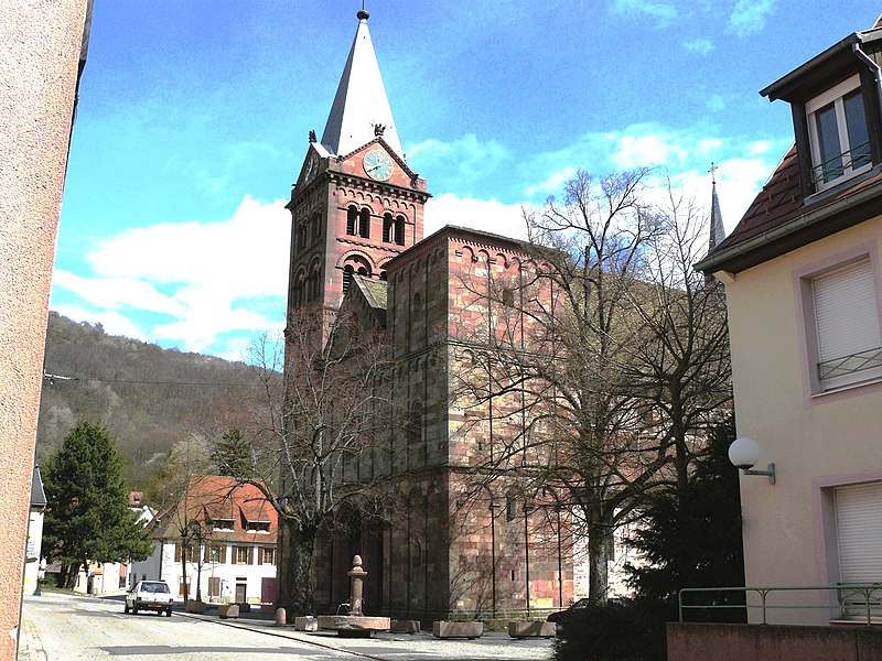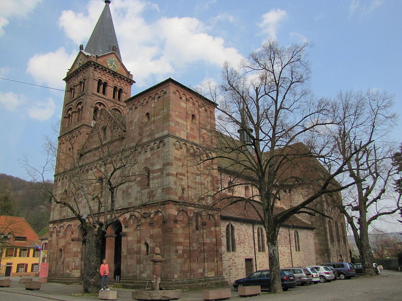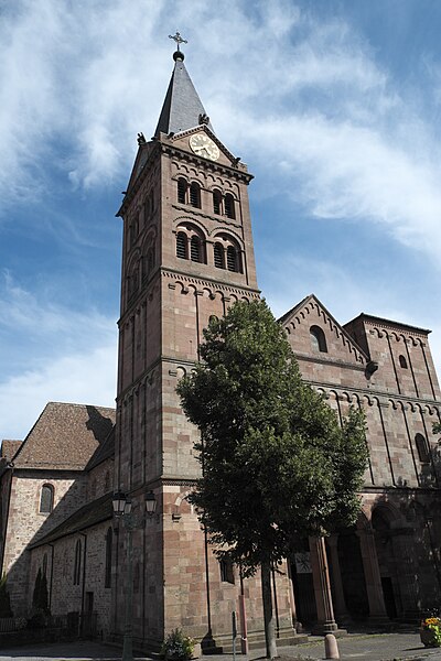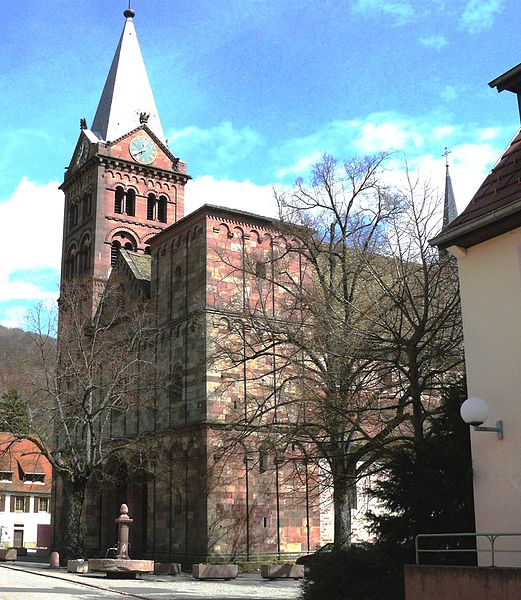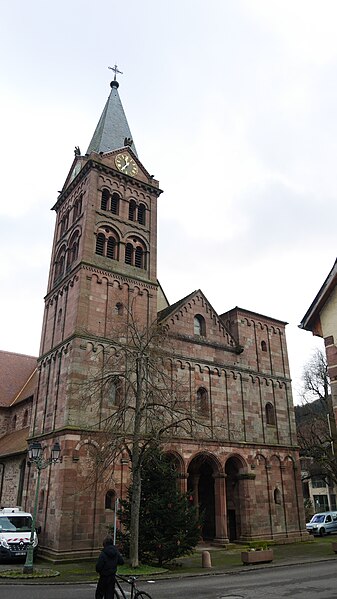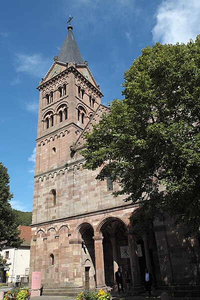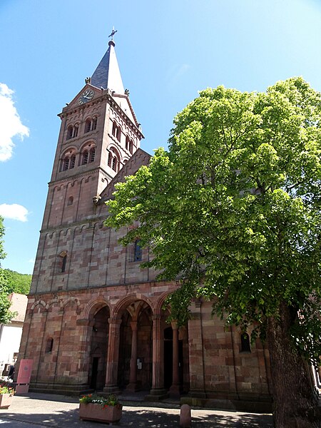L'église Saint-Jean-Baptiste de Lautenbach, dans le Haut-Rhin, est l'ancienne collégiale Saint-Michel et Saint-Gangolphe. Elle a été reconstruite à l'emplacement d'une église primitive détruite en 1080 par les troupes de l'empereur Henri IV. Le vaisseau central de la nef remonte au début du XIIe siècle ; le transept est contemporain ou légèrement postérieur et les bas-côtés un peu antérieurs. Le massif occidental, conçu au milieu du XIIe siècle pour porter deux tours qui auraient peut-être existé avant l'incendie de 1457, a été reconstruit au XIXe siècle avec deux tours en 1862. Le chœur date du troisième quart du XIIIe siècle. Après l'incendie de 1457, la voûte de la nef a été refaite, une tour centrale élevée au-dessus du porche et un corps à étage englobent l'abside du côté nord du transept. Aux XVIIe et XVIIIe siècles, on a réaménagé les fenêtres des bas-côtés, ajouté une sacristie au sud du chœur qui a depuis disparu, et rénové le décor et le mobilier. Au XIXe siècle, outre la reconstruction du massif occidental, l'abside romane du bras nord du transept a été supprimée en 1880 pour installer un escalier d'accès à la chapelle haute ou à la salle des archives, qui avant la Révolution communiquait avec le bâtiment conventuel. En 1933, les chapiteaux de la nef, jusque-là masqués par des gypseries du XVIIIe siècle, ont été dégagés. L'édifice est classé au titre des monuments historiques depuis 1898. Parmi les éléments remarquables figurent un porche roman, le vaisseau de la nef avec sa perspective vers le chœur et la tribune d'orgue, le maître-autel (1706), les autels du Rosaire (1718), du Précieux-Sang (1719) et de Saint-Wendelin (1719), une chaire à prêcher du XVIIIe siècle et l'orgue de tribune Toussaint (1771).