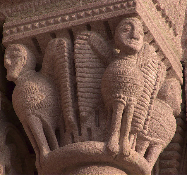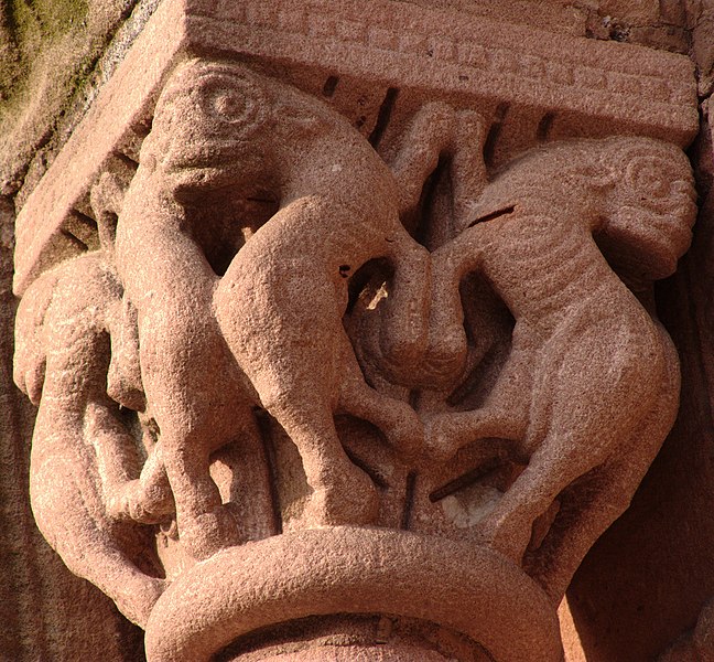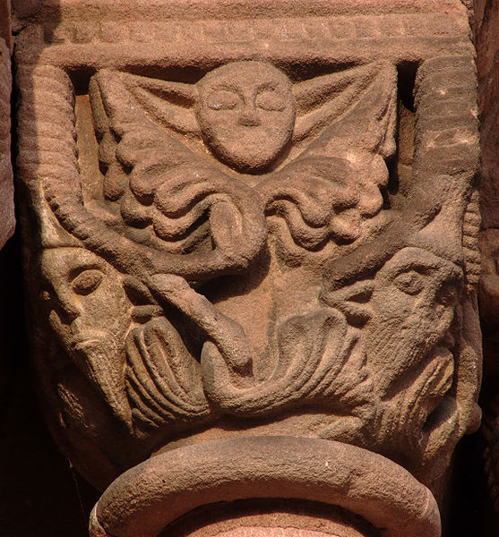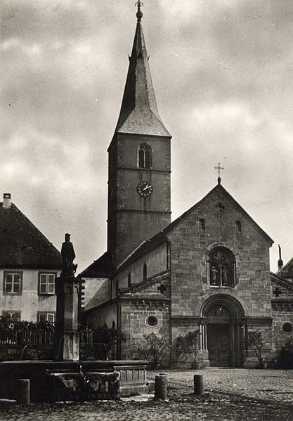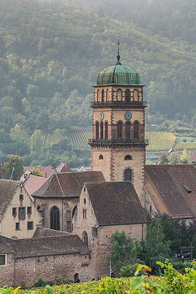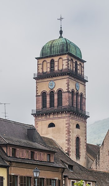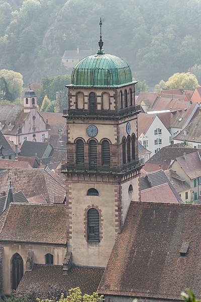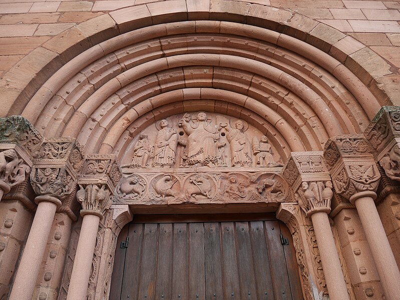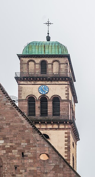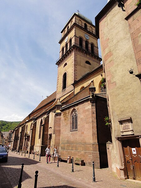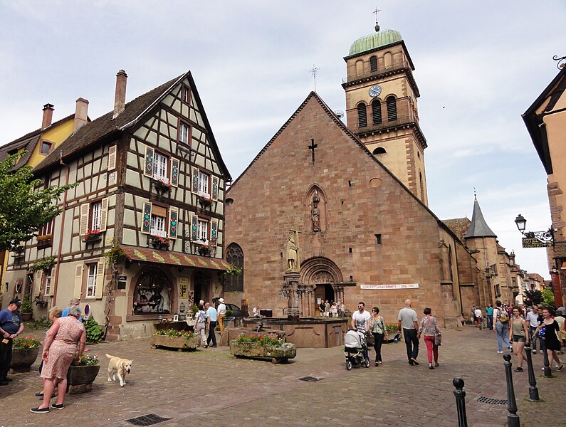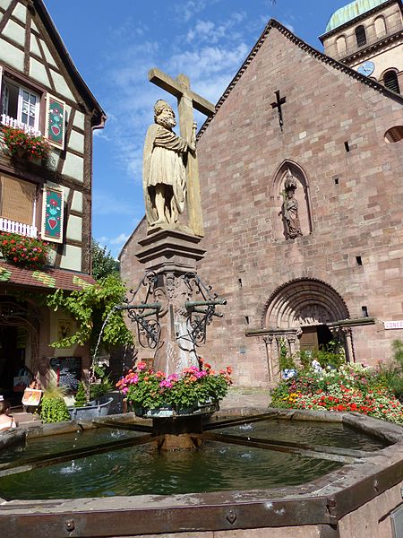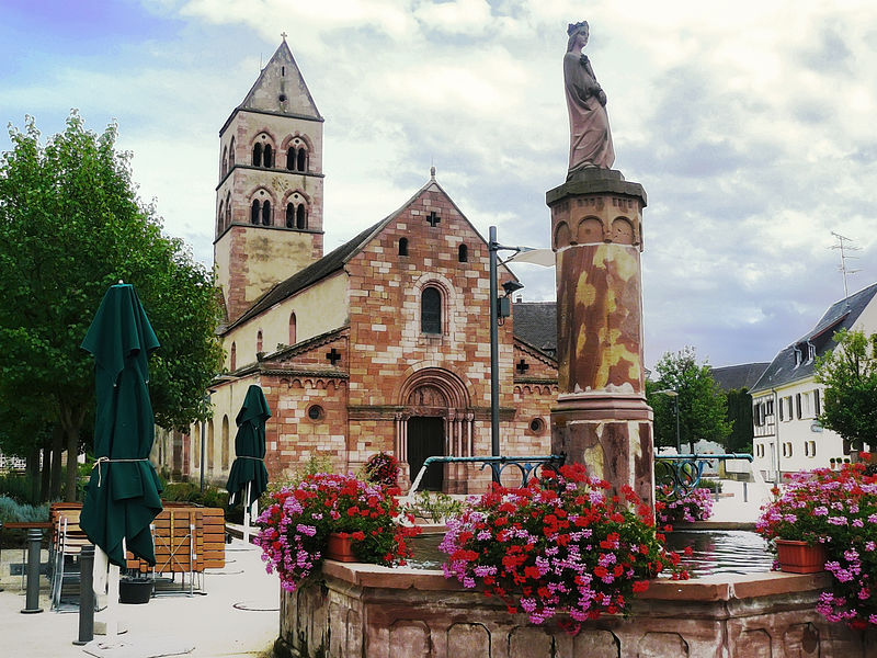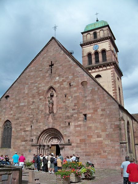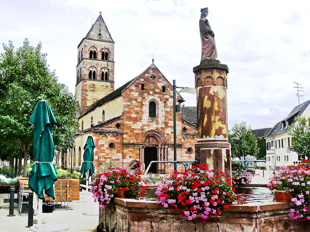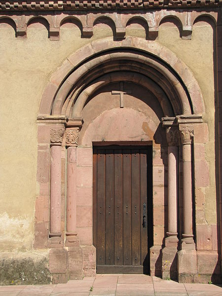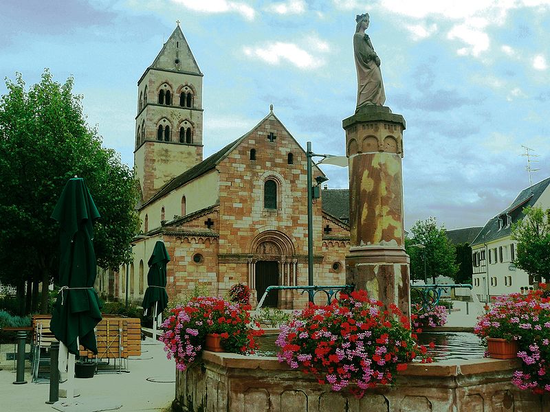 L'église Saint‑Pierre‑et‑Saint‑Paul est située place de l'Église à Sigolsheim, dans le Haut‑Rhin. Classée au titre des monuments historiques par arrêté du 1er octobre 1841, elle conserve des éléments romans associés à des réaménagements successifs. Une première église fondée par l'impératrice sainte Richarde en 880 fut remplacée par une paroissiale romane vers 1180‑1190, utilisant les fondations du chœur demi‑circulaire et peut‑être le mur oriental de la nef. Au XVe siècle, après un pillage et des destructions attribués au seigneur Jean Wild, la tour de croisée reçut des baies gothiques en arc brisé et une flèche remplaça la couverture antérieure. En 1837‑1838, l'architecte départemental Félix Griois allongea la nef vers l'ouest par deux travées, reconstruisit une travée simple et la façade occidentale à l'identique avec des matériaux d'origine; les escaliers en vis ne furent toutefois pas rétablis jusque sous le comble, les baies furent agrandies, la baie au‑dessus du portail reçut un réseau néo‑gothique abritant les statues de saint Pierre et de saint Paul, la porte du croisillon sud fut déplacée dans le bas‑côté sud et une nouvelle porte percée dans le bas‑côté nord. Selon les plans de Jean‑Baptiste Schacre, le chœur roman demi‑circulaire fut remplacé en 1865‑1866 par un chœur néo‑roman plus vaste, comportant une travée droite, une abside et une sacristie arrondie vers le sud; l'ensemble fut béni en 1866. En 1910‑1911, Klem fournit un mobilier liturgique neuf. Les bombardements de décembre 1944 endommagèrent gravement l'édifice et la tour fut incendiée la nuit de Noël. Restaurée dans les années 1950 par Charles‑Henri Arnhold, l'église a bénéficié d'une restitution volumétrique du chœur primitif sur des fondations carolingiennes ou ottoniennes mises au jour lors de fouilles, ainsi que de la restitution de l'élévation romane de la tour à partir de vestiges de baies du XIIe siècle partiellement conservés en place ou noyés dans la maçonnerie gothique des niveaux supérieurs. La flèche fut remplacée par un toit en bâtière et les croupes des bras du transept restaurées en pignons selon l'état antérieur à 1837. Orientée et entièrement voûtée, l'église présente une nef à trois vaisseaux (trois travées doubles et une travée simple), un transept non saillant avec tour de croisée et un chœur demi‑circulaire plus large que le vaisseau central. De grandes arcades alternent piles fortes et piles faibles et sont surmontées d'une frise de billettes; doubleaux, formerets et ogives retombent sur piédroits, dosserets et colonnettes dont certains chapiteaux sont sculptés d'aigles, notamment contre l'arc triomphal. Des ogives quadrangulaires apparaissent dans les bas‑côtés et des ogives à cavets dans la croisée, où elles retombent sur des chapiteaux sculptés de têtes; dans le comble du bas‑côté nord subsistent deux consoles à buste d'homme et à dragons ailés, le tympan de la porte murée nord du transept porte un décor gravé et les chapiteaux de la porte sud sont sculptés. Des frises d'arceaux ornent les élévations de la nef et du transept, et des consoles sculptées de têtes d'homme et de chat décorent la façade ouest; dans chaque face de la tour, aux deuxième et troisième étages, deux baies géminées sont encore visibles. Le portail concentre l'essentiel du décor : les chapiteaux des colonnettes de l'ébrasement présentent un bestiaire réel et fantastique dans une végétation luxuriante, le linteau porte cinq médaillons figurant l'agneau pascal entouré des symboles des évangélistes, et le tympan représente le Christ remettant la clef à saint Pierre et le livre à saint Paul, encadré par deux donateurs, l'un offrant une bourse et l'autre un fût de vin.
