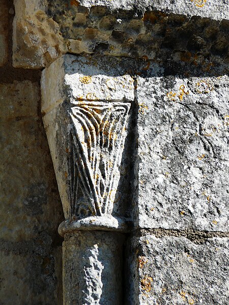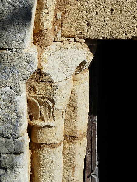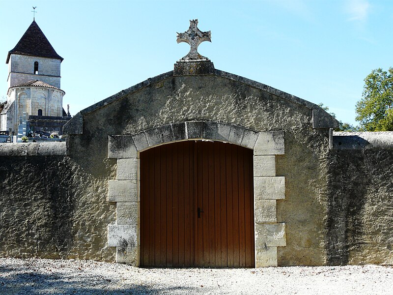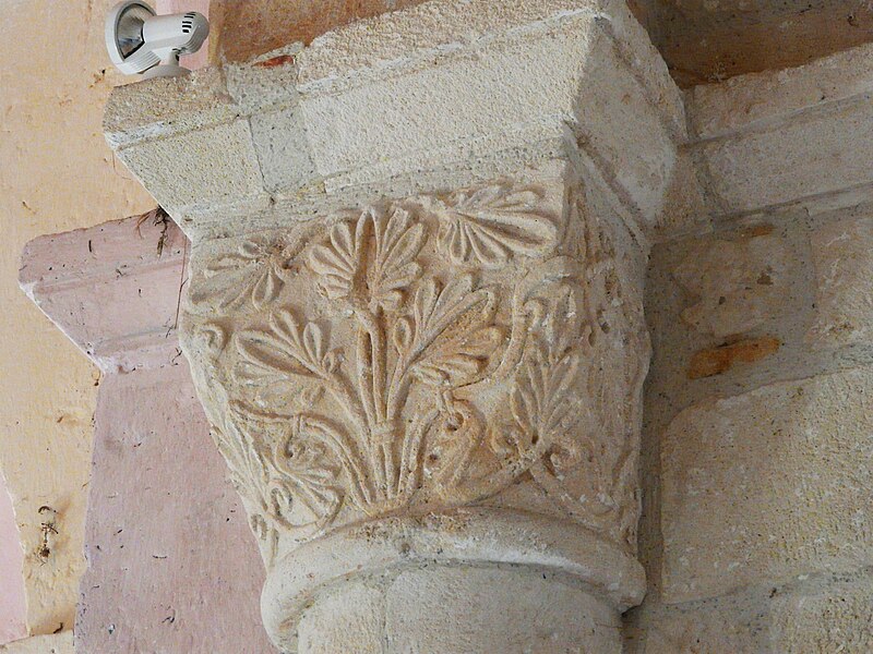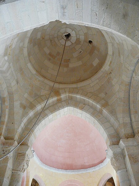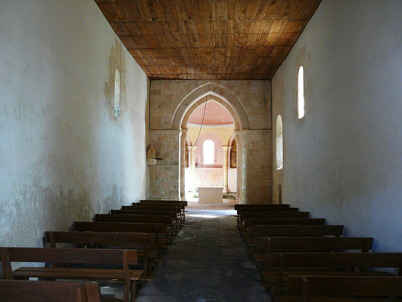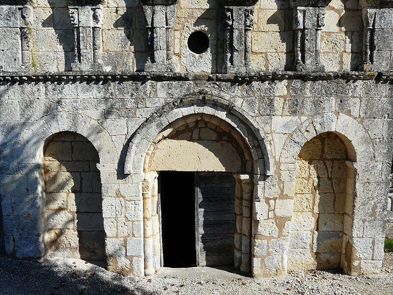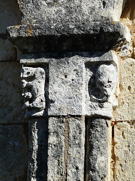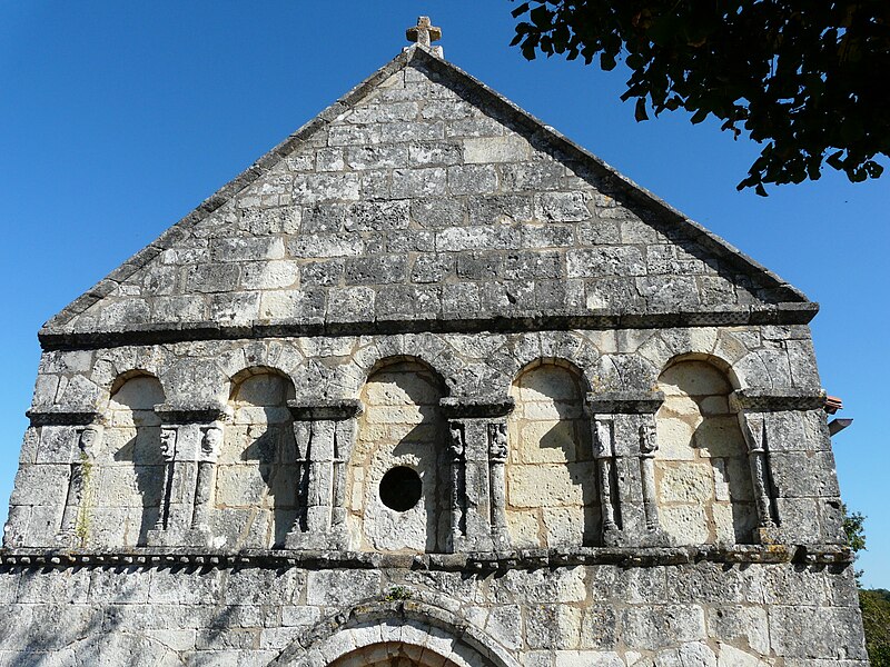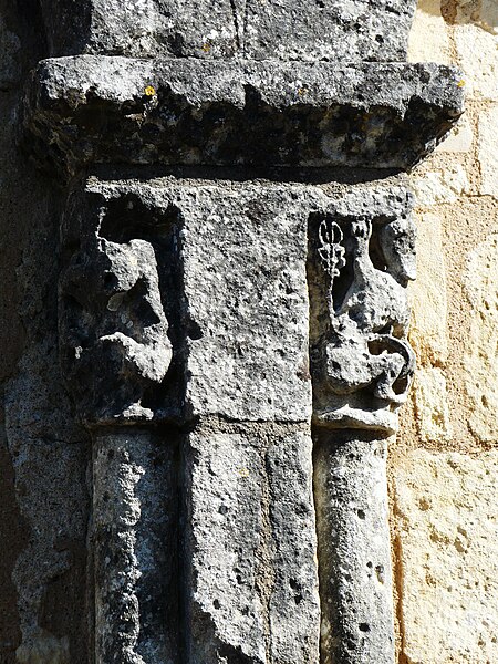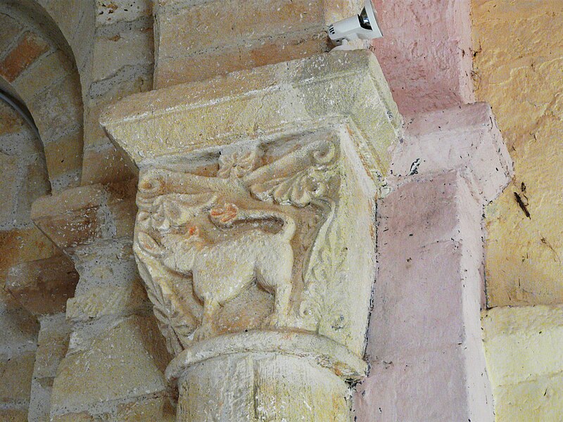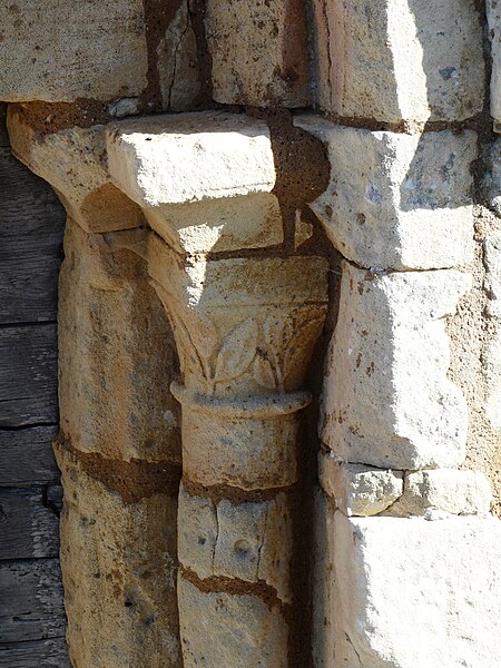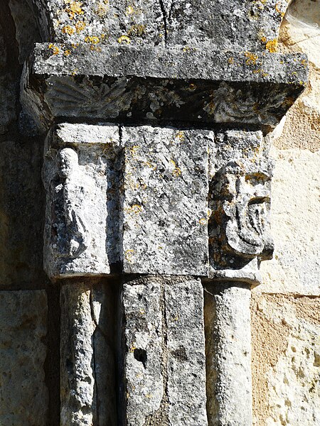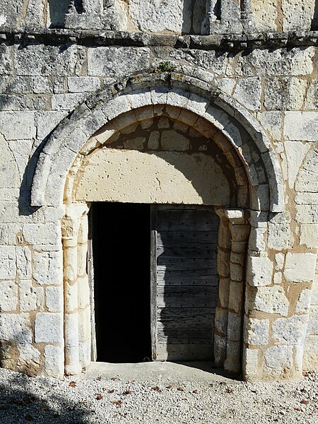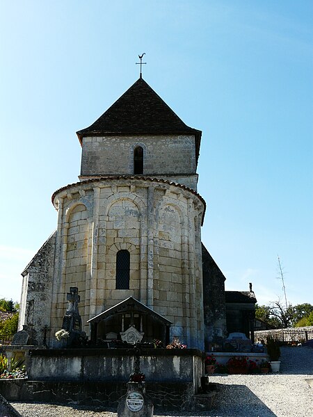 L'église romane s'ouvre par un porche à trois arcades, surmonté d'un entablement portant cinq arcades. Chaque arcade repose sur trois colonnettes dont les chapiteaux sont sculptés de personnages et d'animaux. La nef a été surbaissée après la suppression de la voûte primitive, remplacée par une voûte en bois. Le clocher est couvert d'une coupole. Le chœur est soutenu par quatre gros piliers de granit aux chapiteaux sculptés.
