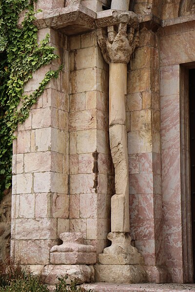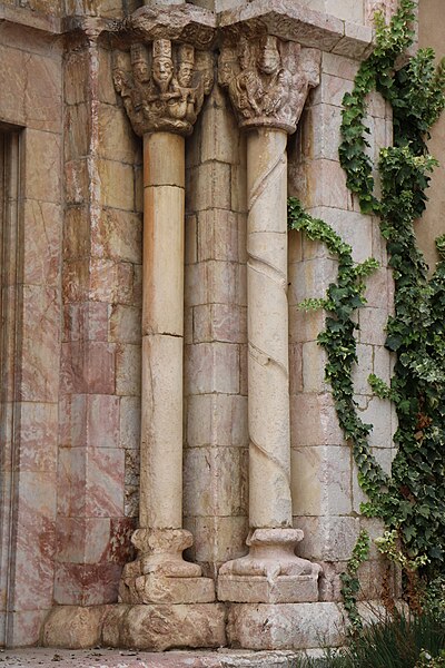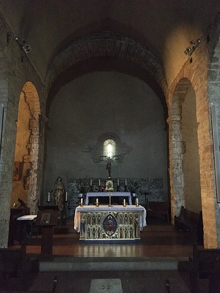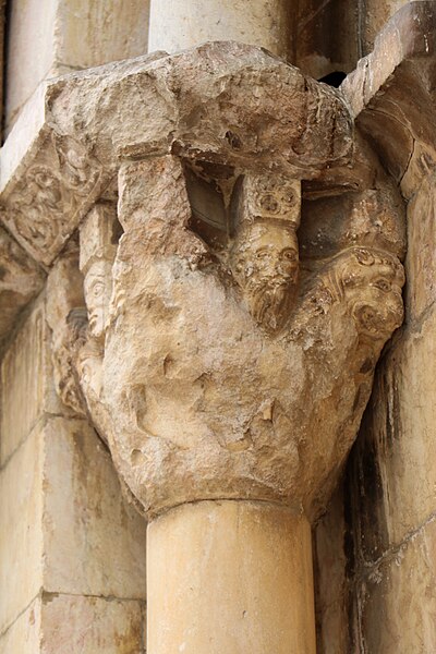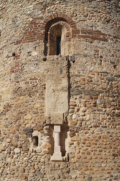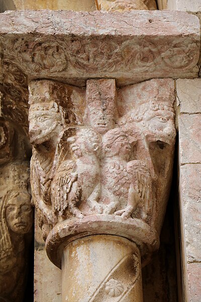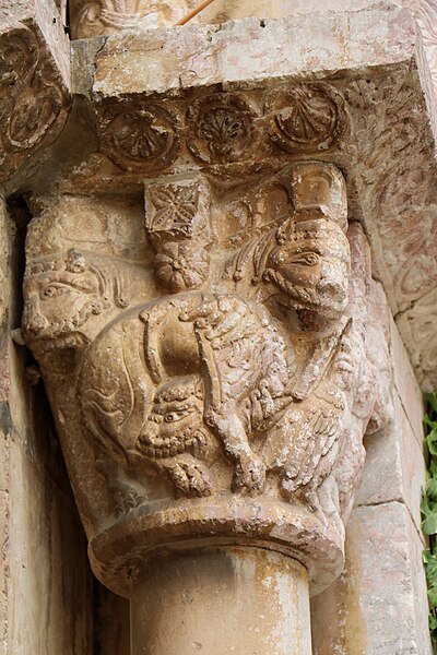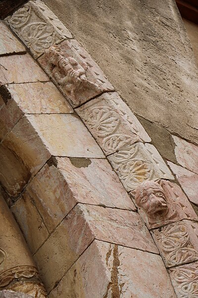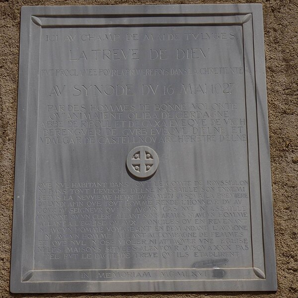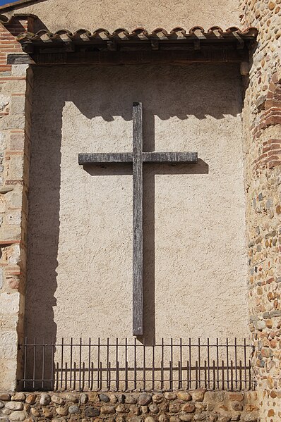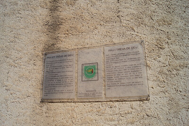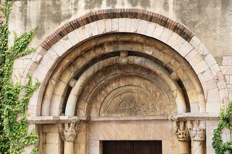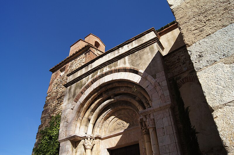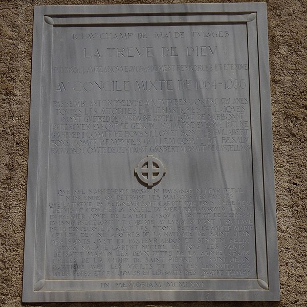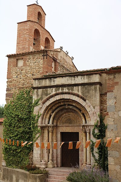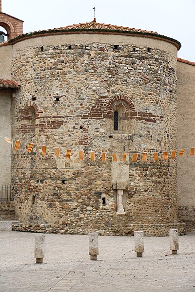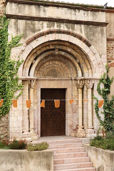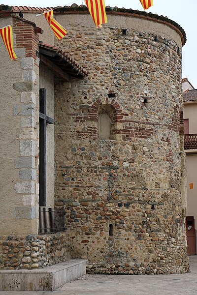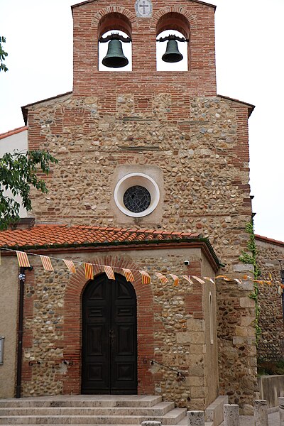 L'église de l'Assomption-de-la-Vierge, de style roman, se situe à Toulouges dans les Pyrénées-Orientales (région Occitanie). L'édifice, dont le porche roman est richement sculpté, s'ouvre par un portail en marbre blanc rapporté à une époque récente contre la façade sud. Le porche est classé au titre des monuments historiques depuis le 19 août 1907 ; le reste de l'église est inscrit depuis le 16 avril 1959 et des travaux de restauration ont été menés entre 1958 et 1961. La nef primitive, plus large que l'actuelle, était couverte d'une charpente apparente ; ses murs en moellons étaient enduits à la chaux et peints d'un décor linéaire en ocre rouge. Plus tard, vraisemblablement au XIIe siècle, les murs goutterots furent renforcés par des arcatures en plein cintre en pierres de taille plaquées contre le parement intérieur, et l'ensemble reçut une voûte en berceau légèrement brisé. Les chapelles latérales ont été aménagées ultérieurement en perçant l'ancien goutterot au droit des arcades. Le chevet comporte une crypte en hémicycle qui forme le soubassement de l'abside ; un banc en maçonnerie s'appuie contre sa partie circulaire. La crypte, voûtée d'une demi-coupole, a vu son sommet arasé pour abaisser le sol du sanctuaire qui la surmonte, rendant la crypte aujourd'hui inaccessible. Le jointement à trait unique, gravé au fer, employé pour dresser un parement à l'emplacement de la voûte détruite correspond aux techniques roussillonnaises des XIe–XIIe siècles, tandis que les maçonneries plus anciennes du chevet sont jointoyées à deux traits parallèles. On peut donc supposer que l'abandon de la crypte est contemporain du voûtement de la nef, ce qui permet de dater l'édifice de la seconde moitié du XIe siècle. La nef unique s'ouvre à l'est sur une abside semi-circulaire légèrement outrepassée ; des arcs latéraux jouent le rôle d'arcs de décharge et animent les murs nord et sud. À partir du XVIIIe siècle, des extensions ont permis l'ouverture de chapelles latérales et la création d'une sacristie ; le chœur conserve un maître-autel et un tabernacle du XVIIIe siècle.