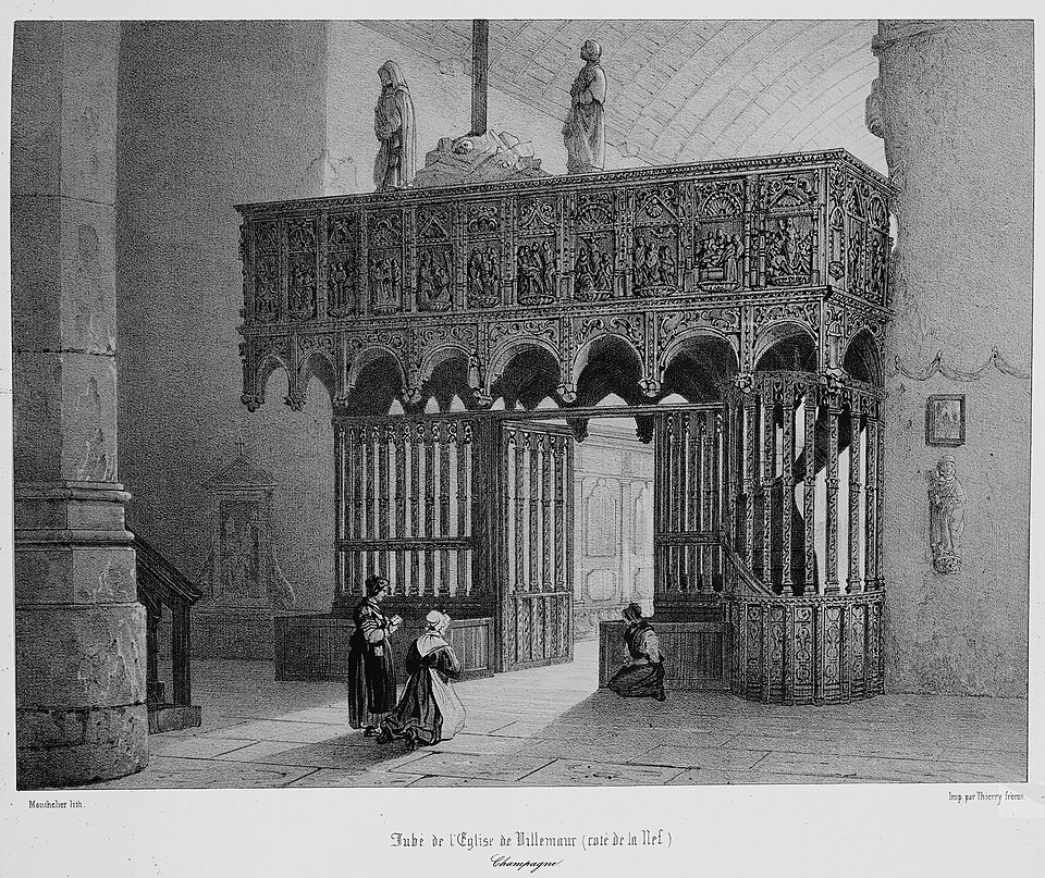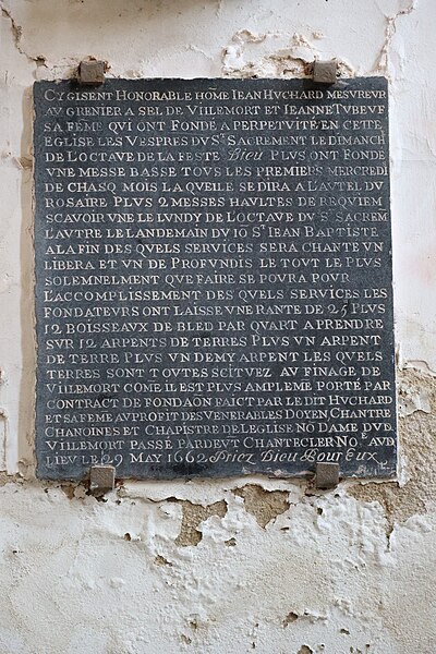 L'église collégiale de l'Assomption-de-la-Vierge, située à Villemaur-sur-Vanne dans l'Aube, présente un mobilier et des œuvres d'intérêt. Elle conserve notamment deux dalles funéraires du XIVe siècle, l'une d'Isabiaus Creissart et l'autre de Jehan et Issabeaus. Un lutrin en forme d'aigle du XVIe siècle et un ensemble de statues du même siècle complètent le mobilier : une sainte Barbe en calcaire avec traces de polychromie, un groupe en calcaire composé d'un ange et de Marie avec dorure et polychromie, une représentation de l'éducation de Marie en calcaire doré et polychrome, ainsi qu'une Vierge à l'Enfant en calcaire polychrome. La chaire à prêcher, réalisée par le menuisier Jacques Prudhon, date de 1777. Deux plaques commémoratives de fondation en cuivre, datées du XVIIe siècle, honorent Jean Suzanne et sa femme Christine Janson, ainsi que Jean Huchard et sa femme Jeanne Tubeuf. L'église possédait plusieurs reliquaires, dont une chasse de saint Flavit en émaux de Limoges et un autre dit « des Martyrs », ainsi qu'un bénitier en fonte ; ces objets ont été volés. Le jubé en bois sculpté, daté de 1521 et attribué aux frères Thomas et Jacques Guyon, est particulièrement remarquable ; il s'inscrit dans un ensemble comprenant la clôture du chœur et le trésor de Villemaur, ce dernier étant actuellement conservé à la cathédrale de Troyes. L'édifice est classé au titre des monuments historiques depuis 1972. L'église est parfois désignée sous le nom de collégiale Notre-Dame.
