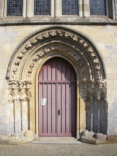 L'église de l'Assomption-de-Notre-Dame à Rouvres, relevant de l'ancien diocèse de Sées, est classée monument historique par arrêté du 7 avril 1879. Elle dépasse par sa taille les églises rurales habituelles et présente plusieurs particularités : deux transepts successifs séparés par un très court espace, une déviation de l'axe du chœur et d'autres irrégularités. Le chœur et le transept oriental datent du XIIIe siècle. La nef, un second transept inachevé et la tour-lanterne du premier transept appartiennent au XIVe siècle. Le portail conserve des archivoltes richement sculptées, reposant de chaque côté sur trois colonnes en claire-voie. L'archivolte extérieure est ornée de deux rangs de feuilles de vigne qui se rejoignent en guirlande et, derrière ces bouquets, apparaissent des têtes de personnages. La guirlande repose, à gauche, sur la figure d'un clerc en chasuble tenant une crosse et la main droite levée. La seconde archivolte est soulignée de tores, tandis que la troisième comporte une guirlande d'artichauts derrière laquelle se tiennent des personnages ailés. La flèche, caractéristique du XIVe siècle, s'appuie sur une tour carrée percée d'arcatures : sa pyramide, légère et ajourée de trèfles et de rosaces, paraît délicate par rapport à la base, mais les amorces de clochetons aux quatre angles témoignent d'un projet décoratif inspiré de la tour Saint-Pierre de Caen. Un retable, daté du XIVe siècle ou de la fin du XIIIe, présente, dans une suite de panneaux séparés par des colonnettes, des scènes retraçant l'histoire du Christ. Lors des bombardements de juin 1944, l'église fut en grande partie détruite et son clocher s'effondra ; elle a ensuite retrouvé progressivement son aspect actuel.