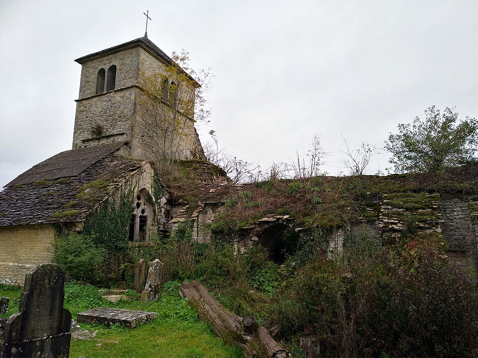 L'ancienne église de Sézéria, désacralisée et autrefois dédiée au culte catholique, se situe à Sézéria, ancienne commune du Jura intégrée à Orgelet. Le site est d'importance pour l'archéologie jurassienne et Sézéria fut le centre d'une paroisse qui comprenait également Chavéria, Chatagna et Moutonne. L'édifice actuel ne paraît pas antérieur au XVe siècle ; il a connu des remaniements au XVIIe siècle et des travaux de restauration au XIXe siècle. Implantée dans un cimetière clos de murs, l'église, orientée, est basse et allongée ; elle présente un puissant massif occidental formé par le clocher-porche, dont le portail porte la date « 1662 », l'ancien presbytère-école (fin du XVIIIe siècle) et une chapelle percée d'une baie flamboyante. La nef, à vaisseau unique, était couverte d'une voûte en berceau brisé sur doubleaux qui s'est totalement effondrée vers 1965, tandis que la travée du chœur conserve son voûtement et que la sacristie, datée de la fin du XVIIIe siècle, lui est adossée. L'église s'inscrit dans la série des églises jurassiennes de « persistance romane » : vaisseau unique, bâtiments bas et allongés, couverture en laves. Sa situation à l'écart et son état de ruine lui confèrent un intérêt particulier. Le monument, appelé localement « La Chapelle », est très largement en ruines et l'accès intérieur en est interdit. Il a été inscrit au titre des monuments historiques en avril 1998, grâce à l'action de l'Association pour la Sauvegarde du Patrimoine Historique d'Orgelet et sa Région, et figure parmi les 250 « chefs-d'œuvre » recensés par la mission de sauvegarde du patrimoine en péril.