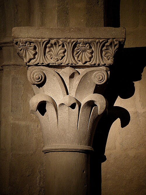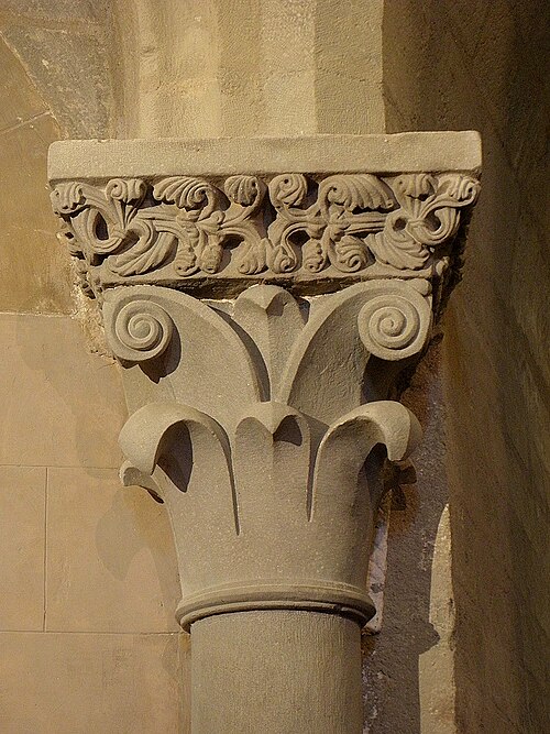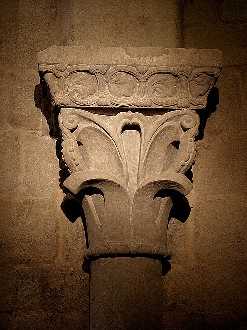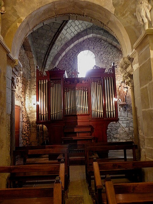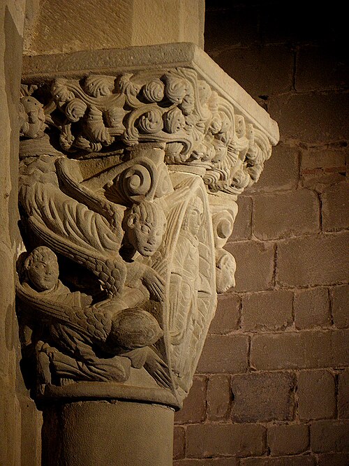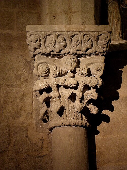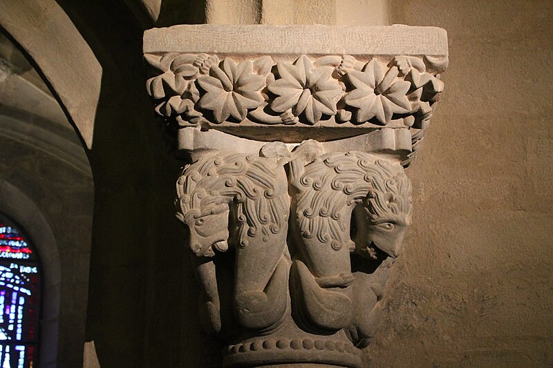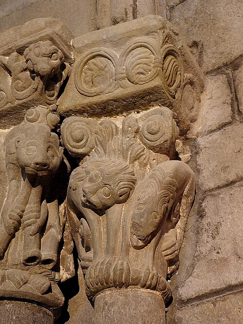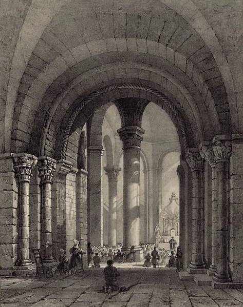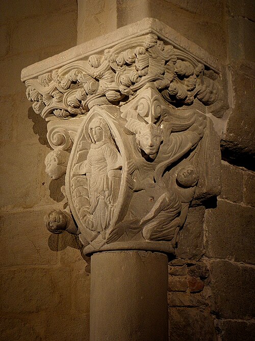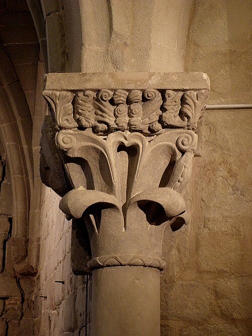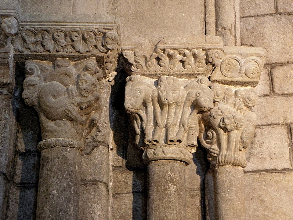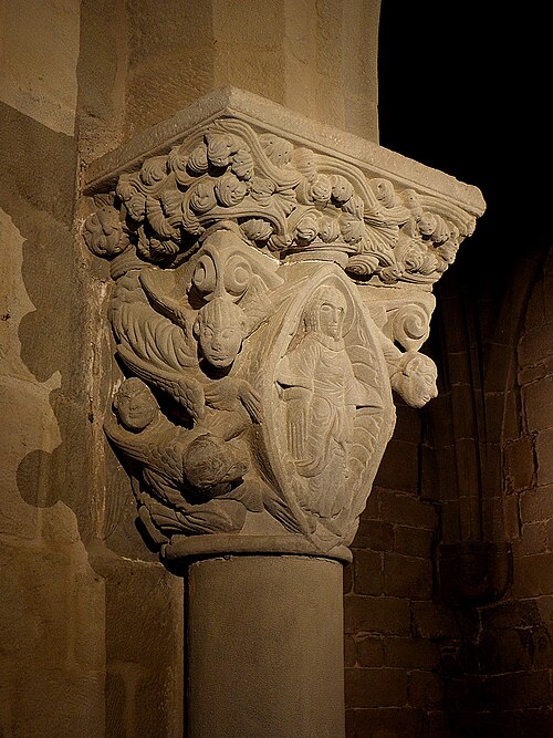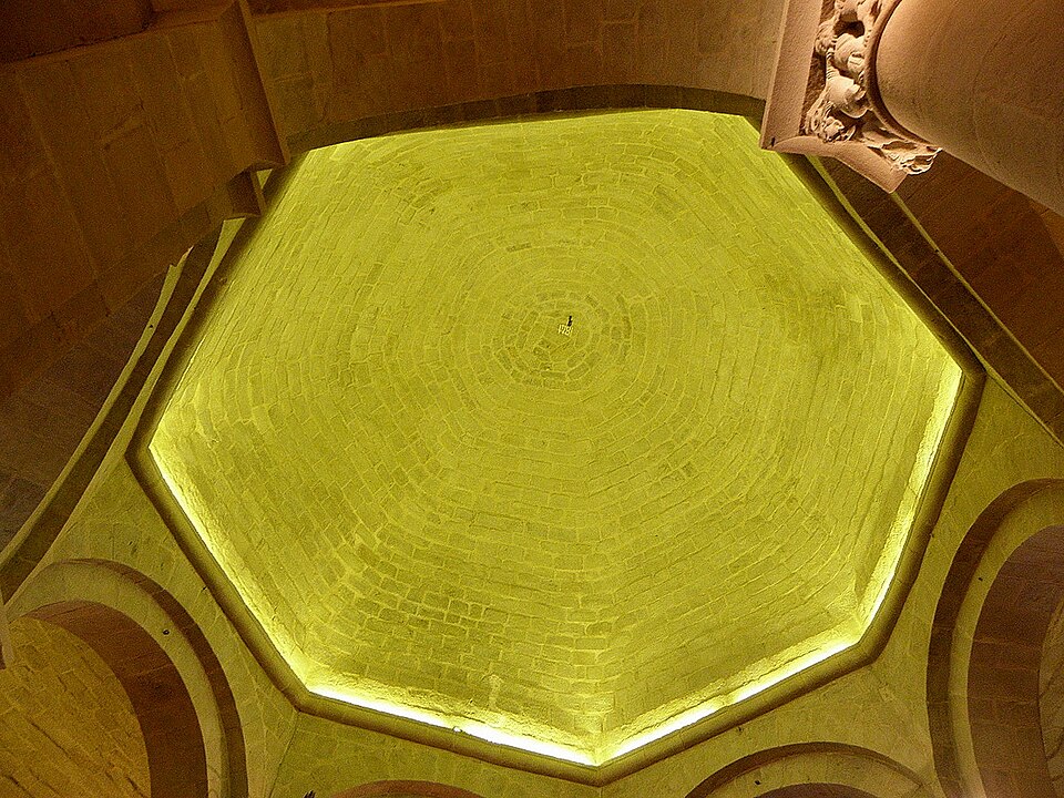 Sur le plan architectural, l'église appartient au groupe des rotondes à collatéral circulaire, comparable à des édifices tels que l'église du Saint-Sépulcre de Jérusalem, Saint-Vital de Ravenne, la chapelle palatine d'Aix-la-Chapelle, Saint-Bénigne de Dijon, l'église de Neuvy-Saint-Sépulchre ou l'abbatiale de Charroux. Elle est conçue selon un plan centré : une rotonde centrale heptagonale couverte d'une coupole à sept pans est entourée d'un déambulatoire à quatorze côtés ; la poussée de la coupole est contrebutée par une voûte en quart de cercle qui couvre le déambulatoire. Cette forme heptagonale, singulière, est présentée comme unique au monde, le chiffre sept étant mis en relation ici avec la sagesse divine et la Vierge Marie. Parmi les sculptures de l'église figure une mandorle représentant l'Assomption de la Vierge, attribuée au Maître de Cabestany, et l'intérieur conserve divers chapiteaux et motifs sculptés — chapiteau de l'Assomption attribué au maître de Cabestany, détails de ce chapiteau, un lion, des chapiteaux situés à droite de l'ancien portail et un chapiteau du portail sud orné d'oiseaux.