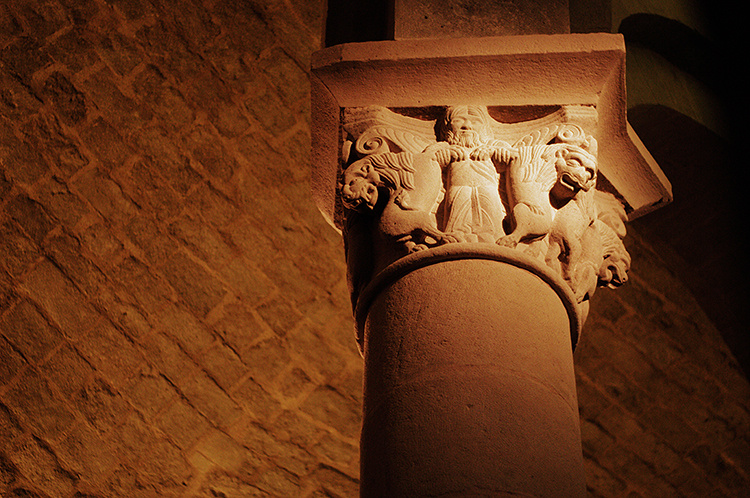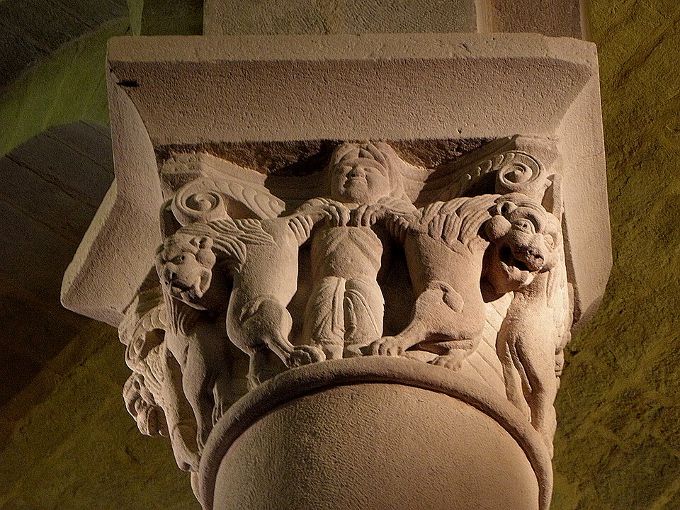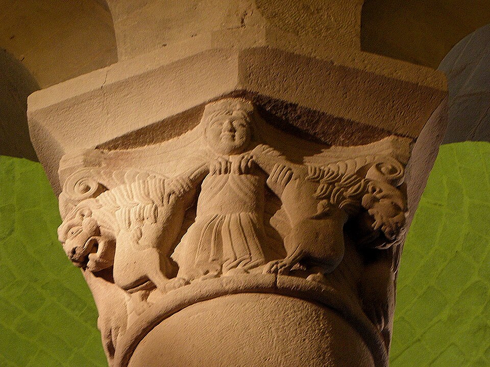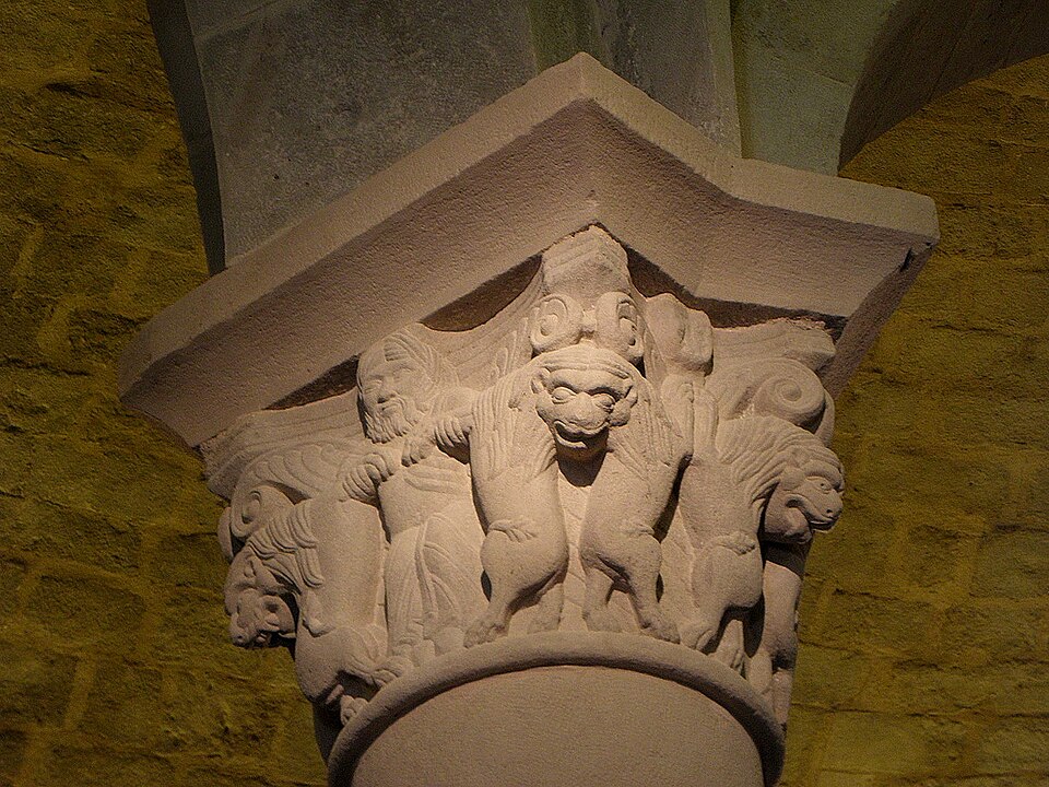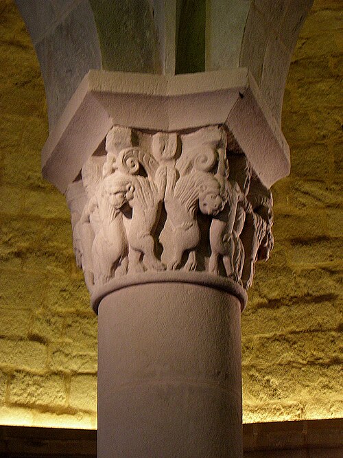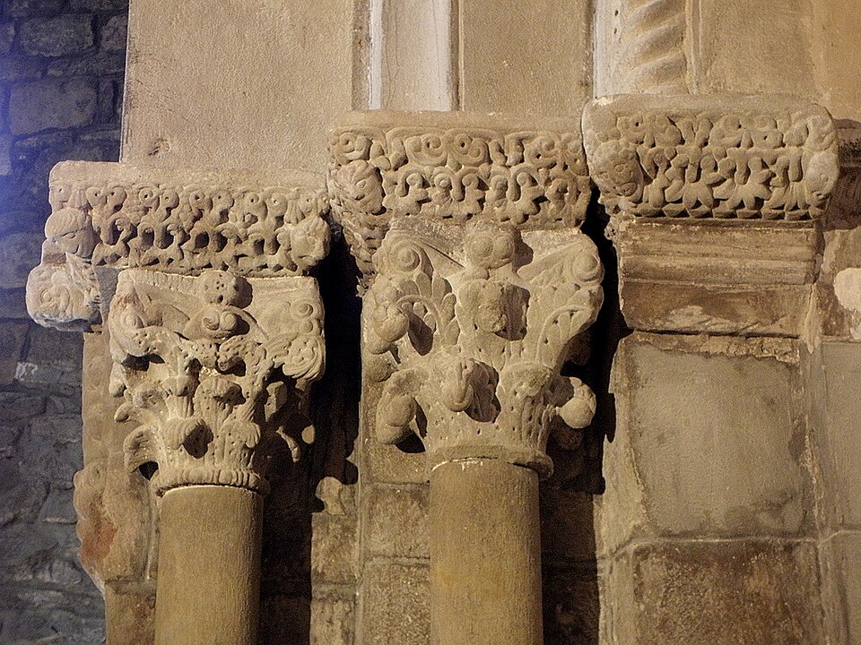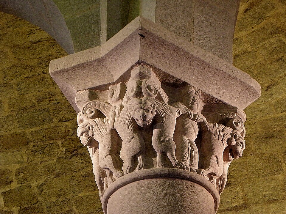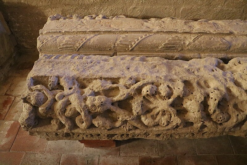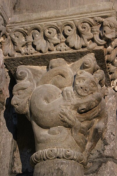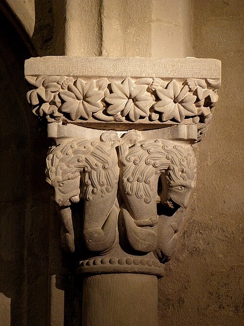 Sur le plan architectural, l'église appartient au groupe des rotondes à collatéral circulaire, comparable à des édifices tels que l'église du Saint-Sépulcre de Jérusalem, Saint-Vital de Ravenne, la chapelle palatine d'Aix-la-Chapelle, Saint-Bénigne de Dijon, l'église de Neuvy-Saint-Sépulchre ou l'abbatiale de Charroux. Elle est conçue selon un plan centré : une rotonde centrale heptagonale couverte d'une coupole à sept pans est entourée d'un déambulatoire à quatorze côtés ; la poussée de la coupole est contrebutée par une voûte en quart de cercle qui couvre le déambulatoire. Cette forme heptagonale, singulière, est présentée comme unique au monde, le chiffre sept étant mis en relation ici avec la sagesse divine et la Vierge Marie. Parmi les sculptures de l'église figure une mandorle représentant l'Assomption de la Vierge, attribuée au Maître de Cabestany, et l'intérieur conserve divers chapiteaux et motifs sculptés — chapiteau de l'Assomption attribué au maître de Cabestany, détails de ce chapiteau, un lion, des chapiteaux situés à droite de l'ancien portail et un chapiteau du portail sud orné d'oiseaux.