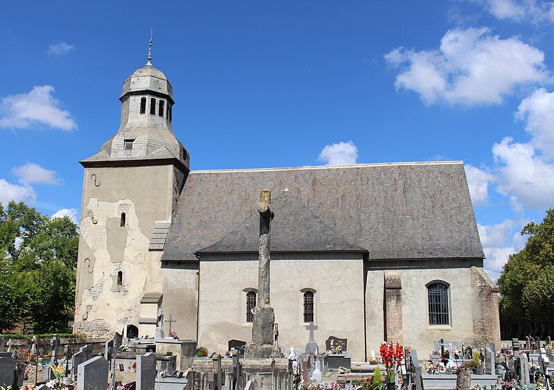 L'église était à l'origine composée d'une nef à chevet plat ; de cette construction primitive subsiste le mur est du chevet. Les maçonneries présentent un appareil en assises de briques "toulousaines" alternant avec des lits de cailloux liés au mortier, et des contreforts en briques. À une époque ultérieure, probablement au XVIIe siècle, la nef unique a été flanquée de deux bras de transept larges et courts, rendant le plan sensiblement cruciforme. Au XVIIIe siècle, un clocher pourvu d'un portail classique a été élevé à l'ouest de la nef et forme un porche ouvert sur le cimetière ; le mur du chevet a alors été surélevé ou refait en pignon aigu. Ces additions sont réalisées dans le même appareil de briques et galets que la nef primitive. À l'intérieur, la nef est couverte d'une voûte en bois nervée et communique avec les bras du transept, qui servent de chapelles latérales, par de grandes arcades en anse de panier.