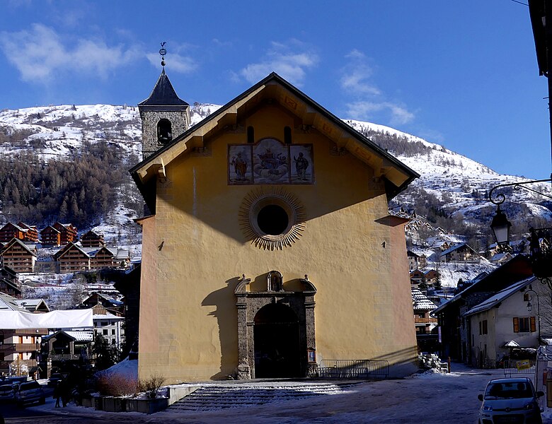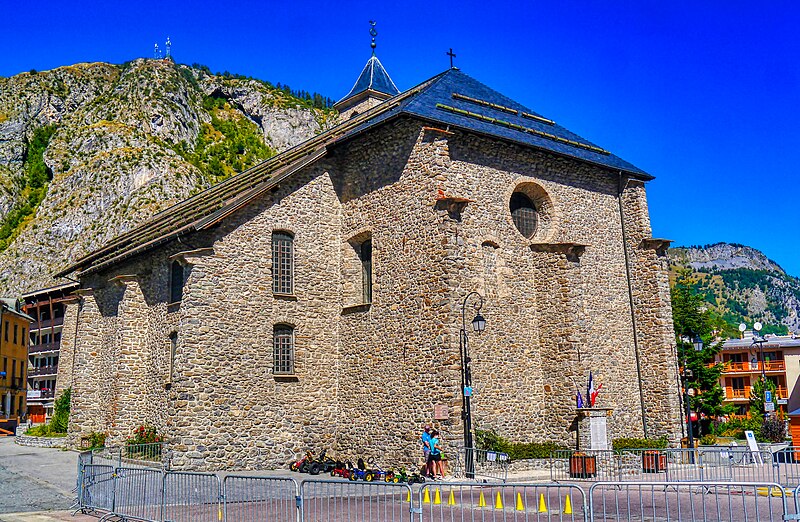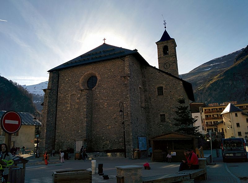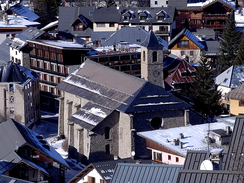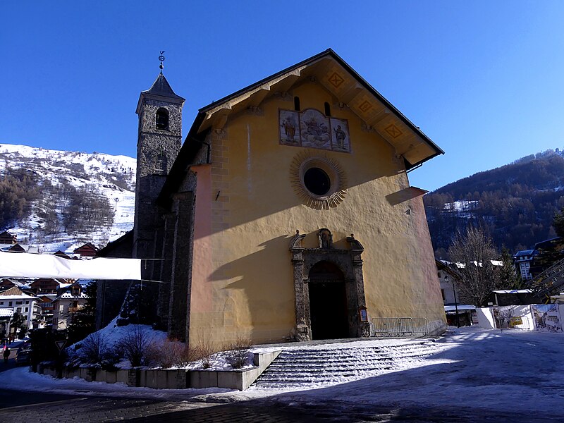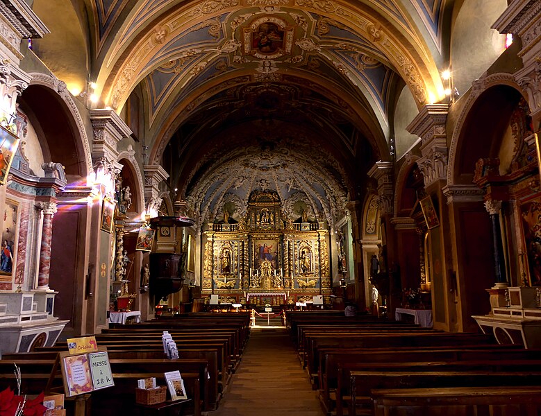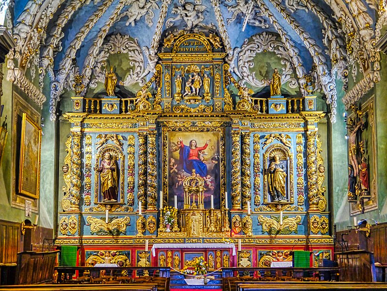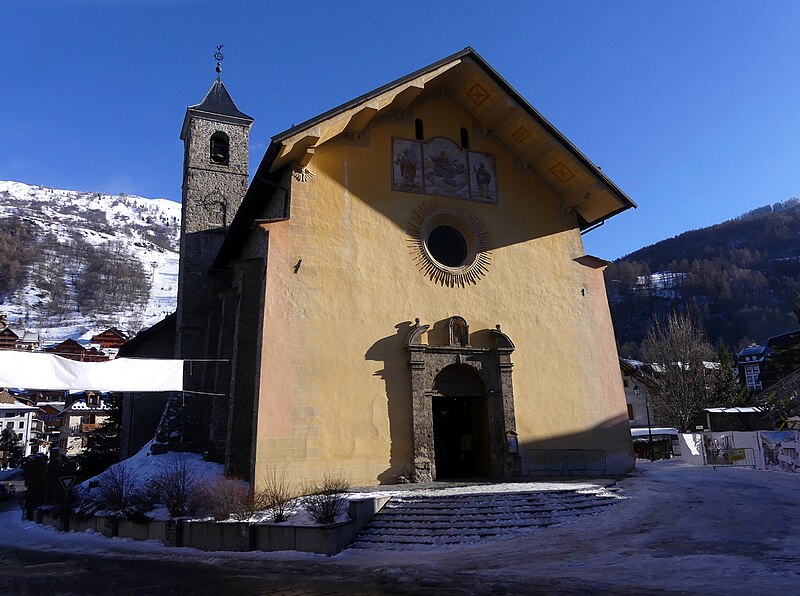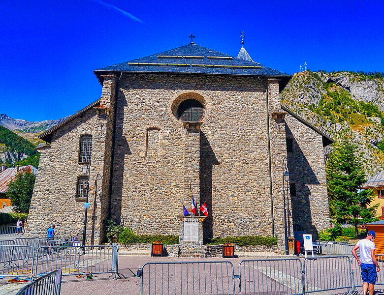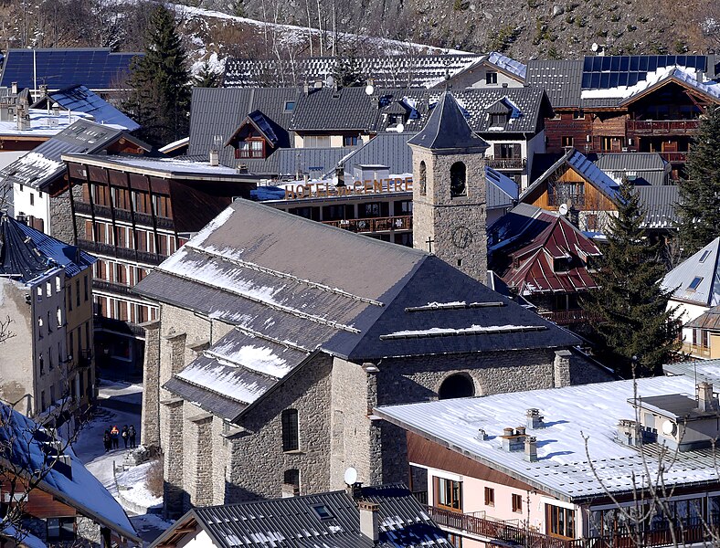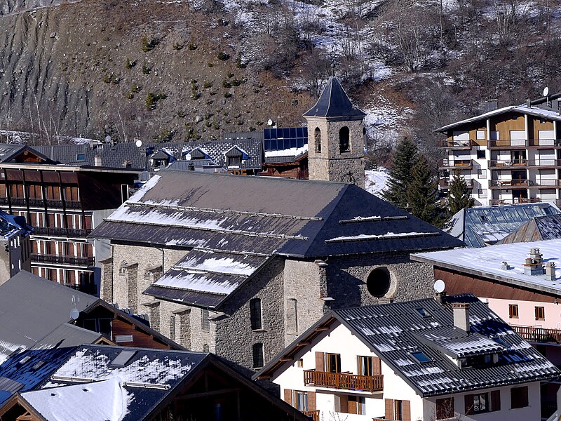 L’église Notre‑Dame de l’Assomption, située à Valloire en Savoie, est classée au titre des monuments historiques depuis le 20 septembre 1945. Le village de Valloire est mentionné dès 1038, selon Samuel Guichenon et Joseph‑Antoine Besson ; la tradition attribue à une première église une dédicace à saint Pierre, sans preuve documentaire, et aucune source n’indique quand l’édifice est devenu paroissial. Au début du XVIIe siècle, l’église paraît devenue trop petite ; l’évêque de Saint‑Jean‑de‑Maurienne, Monseigneur Milliet (1609), puis son successeur Charles Bobba (1622), ordonnent son agrandissement et donnent finalement le choix de la reconstruire. Un projet se construit entre 1623 et 1640, et la tradition rapporte que chaque paroissien apportait une pierre à la messe et formait parfois une chaîne pour les déplacer ; les travaux débutent en 1660. Les travaux sont dirigés par le père Dupré pour la période 1639–1682, puis, à partir de 1679, par le révérend Bertrand Martin. L’édifice est conçu dans un style baroque et consacré le 22 juillet 1682 par l’évêque Hercule Berzet (Berzetti). Des campagnes de restauration ont concerné la façade, les autels et les tableaux au cours des années 2000 et en 2006. L’église présente une nef unique avec un transept bas en forme de croix latine, construite en pierre grise locale ; elle comporte huit autels latéraux et un chœur dont le maître‑autel s’organise autour d’un triptyque. La façade comporte un portail orné et une porte sculptée riche en détails. Le chœur, à fond plat, est voûté en cul‑de‑four polygonal. Le retable majeur, réalisé en 1673 par l’artiste François Rymellin et restauré en 1852, est en noyer et s’articule autour de six colonnes torses ; deux statues en bois polychrome d’environ deux mètres, saint Pierre à gauche et sainte Thècle à droite, flanquent le tabernacle. Sainte Thècle, sainte locale attribuée à la fin du Ve‑début du VIe siècle, est représentée portant deux doigts reliquaires de Jean‑Baptiste qu’elle aurait rapportés d’un pèlerinage en Terre Sainte. La nef est couverte d’un plan voûté d’arêtes avec doubleau séparatif et cartouche sommital. Les huit autels latéraux sont respectivement dédiés à saint Sébastien (le plus ancien), saint Antoine, le Rosaire, le Sacré‑Cœur, Notre‑Dame du Sacré‑Cœur associé à saint François de Sales — ce dernier étant surmonté d’un tableau de Dufour représentant le couronnement de la Vierge (1682) —, sainte Philomène, saint Joseph et la Vierge. Les armes de Monseigneur Hercule Berzetti, « coupé de sable et d’argent, au lion de l’un en l’autre », ont été peintes sur le plafond. L’ensemble du retable a été réalisé par François Rymellin, originaire de Durbach (Bade) et fils du sculpteur Louis Rymellin installé à Chambéry ; son nom a été découvert aux Archives départementales de la Savoie en mars 1989. Rymellin resta plus de onze ans à Valloire et son fils Charles‑François y reçut le baptême ; en 1678 il fit appel aux stucateurs Louis Gavy et Dominique Crotex et à leurs aides pour exécuter les différentes gypseries.