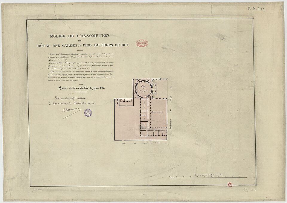 L'église Notre‑Dame‑de‑l'Assomption, dite église polonaise, se trouve place Maurice‑Barrès, à l'angle de la rue Saint‑Honoré et de la rue Cambon dans le 1er arrondissement de Paris, et est affectée à la Mission catholique polonaise en France. Elle dépendait du couvent Notre‑Dame‑de‑l'Assomption, fondé en 1622, et fut construite entre 1670 et 1676. Le cardinal de la Rochefoucauld fit transférer la communauté des Haudriettes rue Saint‑Honoré ; les religieuses, devenues Dames de l'Assomption, transformèrent la maison en couvent et firent appel à Charles Errard pour le projet de la nouvelle église, l'exécution ayant été assurée par M. Chéret. L'édifice fut achevé en 1676 et béni le 14 août de la même année par l'archevêque de Bourges Michel Poncet de La Rivière. Le couvent accueillait sous l'Ancien Régime certaines dames de la cour et occupait une place importante rue Saint‑Honoré. Supprimé en 1790, il devint bien national; ses bâtiments furent transformés en caserne, et les terrains furent ouverts pour la création de la rue de Rivoli, de la rue Cambon et d'autres voies. De l'ancien ensemble subsistent des ailes et la caserne aménagée sur place a successivement accueilli des garnisons puis des services des Finances. Le site fut réaménagé à la fin du XIXe siècle pour permettre la construction du palais Cambon, qui accueille la Cour des comptes à partir de 1912. Le parvis, jusque‑là clos, a été aménagé en place Maurice‑Barrès en 1924. Contrairement aux autres bâtiments, l'église échappa à la destruction et servit de magasin de décors pendant la Révolution. Napoléon l'affecta à la paroisse du 1er arrondissement en remplacement de l'ancienne Madeleine; la dénomination officielle date de 1803, mais le nom d'Assomption demeura d'usage. Après le transfert du culte dans la nouvelle église de la Madeleine, l'Assomption conserva des usages paroissiaux pour l'enseignement du catéchisme. En 1844, l'archevêque Denys Affre attribua l'église à la Mission catholique polonaise; les pères résurrectionistes assurèrent l'aumônerie polonaise jusqu'en 1903. L'église fut classée au titre des monuments historiques en 1907. Sa façade présente un péristyle à six colonnes corinthiennes surmonté d'un fronton triangulaire et évoque la façade nord de la Sorbonne. Le plan centré fait de l'édifice une rotonde de 24 mètres de diamètre, surmontée d'une coupole percée de huit baies alternant avec des niches à statues; la façade est ornée d'un buste de Jean‑Paul II. La crypte abrite un restaurant géré par la Mission polonaise. Parmi les œuvres et le mobilier figurent la peinture murale de la coupole L'Assomption par Charles de La Fosse (1676), La Naissance de la Vierge (1779) de Joseph‑Benoît Suvée, L'Adoration des bergers (1648) de Dingeman van der Hagen, L'Annonciation de Joseph‑Marie Vien, L'Adoration des mages de Carle Van Loo, ainsi que le maître‑autel, l'autel de la Vierge, le chemin de croix, les fonts baptismaux ornés d'une statue de l'Enfant Jésus de Prague, un confessionnal et une plaque en mémoire de Juliusz Słowacki. Le grand orgue est une partie instrumentale d'Aristide Cavaillé‑Coll, datée de la fin du XIXe siècle et portant le numéro 709, logée dans un buffet classique français de la fin du XVIIIe ou du début du XIXe siècle; l'instrument, à transmissions électriques, comporte 19 jeux, deux claviers de 56 notes et un pédalier de 30 notes. Il a été restauré en 1970 par Danion‑Gonzalez, en 1981 par Sebire & Glandaz et à nouveau en 2017‑2018 par Bernard Dargassies après une période de dégradation aggravée par l'empoussièrement lié aux travaux décoratifs de 2013. Le relevage de 2017‑2018 a inclus le démontage partiel, la restauration de la tuyauterie et du sommier, le remplacement de la turbine, la révision de la transmission, le nettoyage, la réharmonisation et l'accord général. L'église a accueilli plusieurs événements marquants : le cœur de François‑Jean‑Hyacinthe Feutrier fut déposé dans un autel le 26 juin 1830, les funérailles du général Lafayette eurent lieu le 22 mai 1834, l'inhumation provisoire de Talleyrand se déroula le 22 mai 1838 et les obsèques de Stendhal eurent lieu en mars 1842. L'édifice a également été fréquenté par le poète Adam Mickiewicz et, à son arrivée à Paris, par le musicien Frédéric Chopin.