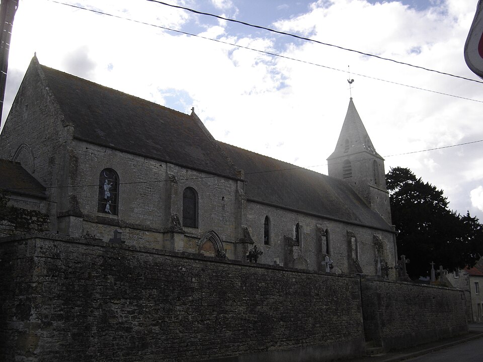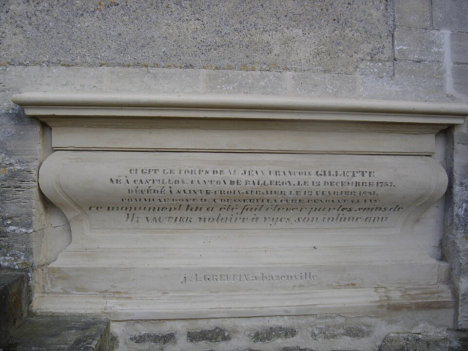L'église paroissiale de l'Exaltation-de-la-Sainte-Croix à Sainte-Croix-sur-Mer (Calvados) est mentionnée en 1242 et son édification est située entre la fin du XIIe et le XIIIe siècle. La nef conserve un caractère roman tandis que le chœur relève du gothique ; le portail est daté du XIIIe siècle. Le bas-côté sud de la nef a été détruit à une date inconnue. Le mur gouttereau nord a été fortement remanié au XVe siècle, avec le percement d'une porte et d'une nouvelle fenêtre. Les baies des murs gouttereaux du chœur ont été agrandies aux XVIe ou XVIIe siècles. Le clocher a en grande partie été réédifié au XVIIIe siècle. La sacristie a été rebâtie dans les années 1840 et le tombeau d'un curé, décédé en 1841, a été intégré dans le mur nord ; la croix de cimetière date de la même époque. Selon un témoignage oral, les chapiteaux des grandes arcades de la nef auraient été retournés juste après la dernière guerre, les faces côté intérieur ayant été bûchées. L'abbaye de Sainte-Barbe-en-Auge exerçait le patronage de la cure jusqu'à la Révolution. Le petit portail nord est inscrit au titre des monuments historiques depuis le 13 avril 1933. Arcisse de Caumont jugeait le chœur et la tour « modernes » et estimait que l'église « n'offre aucun intérêt ». Parmi les éléments mobiliers figurent un bénitier et des fonts baptismaux du XVIe siècle, une Vierge à l'Enfant du début du XVIIe siècle et une crucifixion de la fin du XVIIe siècle. L'édifice comporte également des verrières et deux chemins de croix : l'un en lithographies de Lebhard daté du début du XXe siècle, l'autre dessiné au fusain par Monique Midy en 1980.