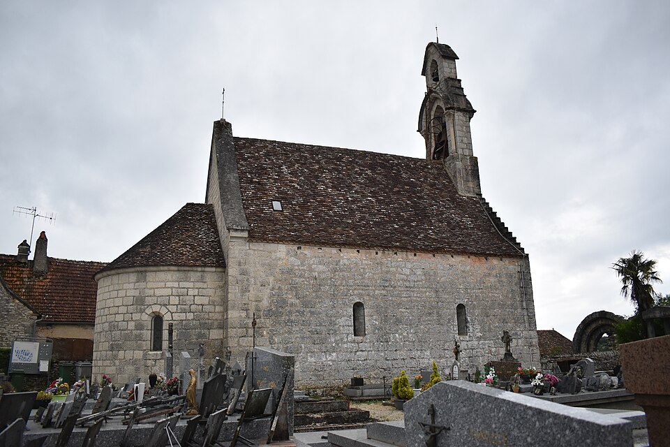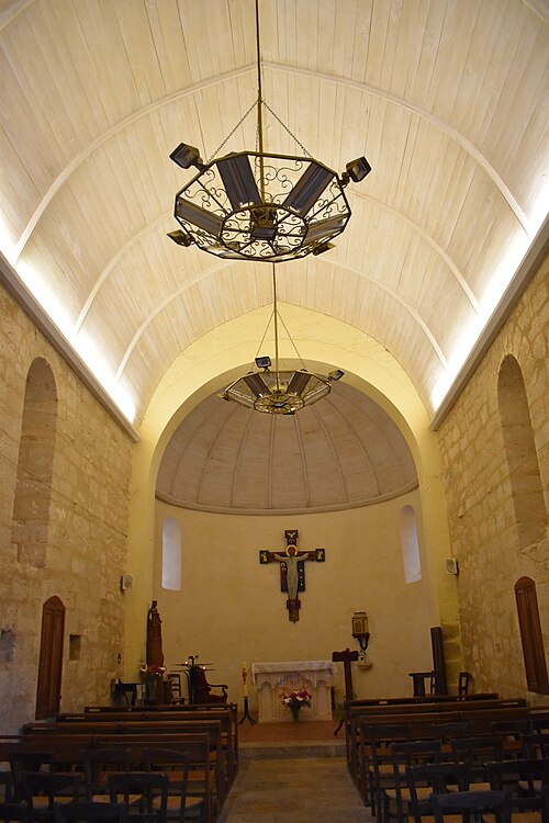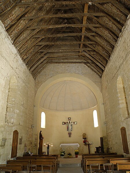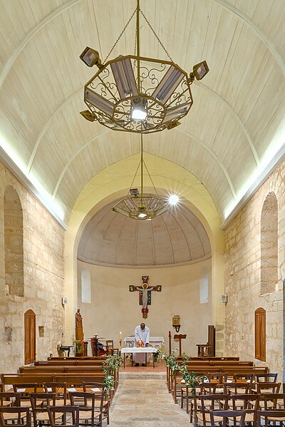 La première travée, voûtée en berceau, semble remonter au XIIe siècle. Dans la seconde travée, où deux chapelles basses paraissent former une sorte de transept, les piles sont romanes tandis que les voûtes ont été refaites au XIVe siècle, en même temps que le chœur. Le clocher est moderne.