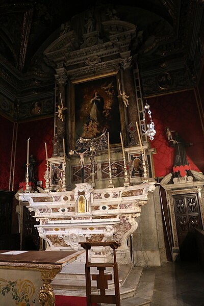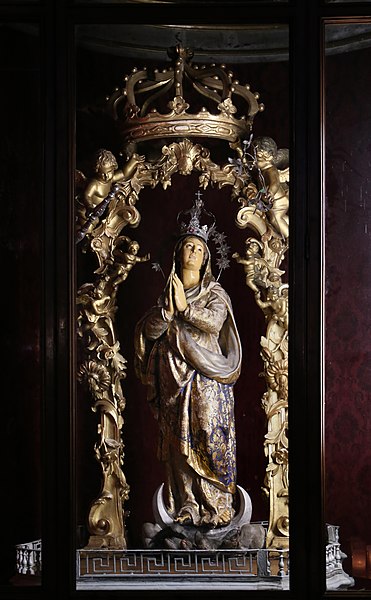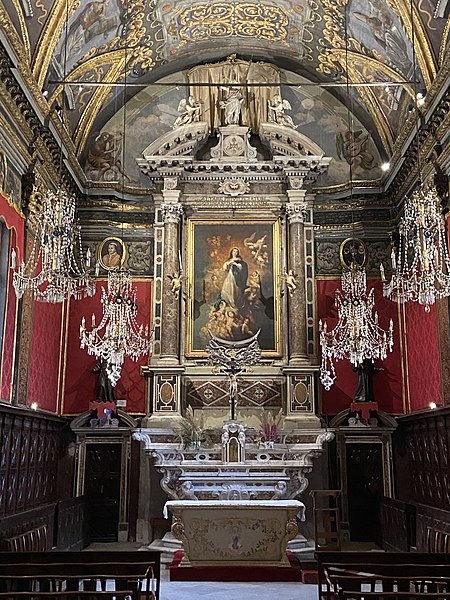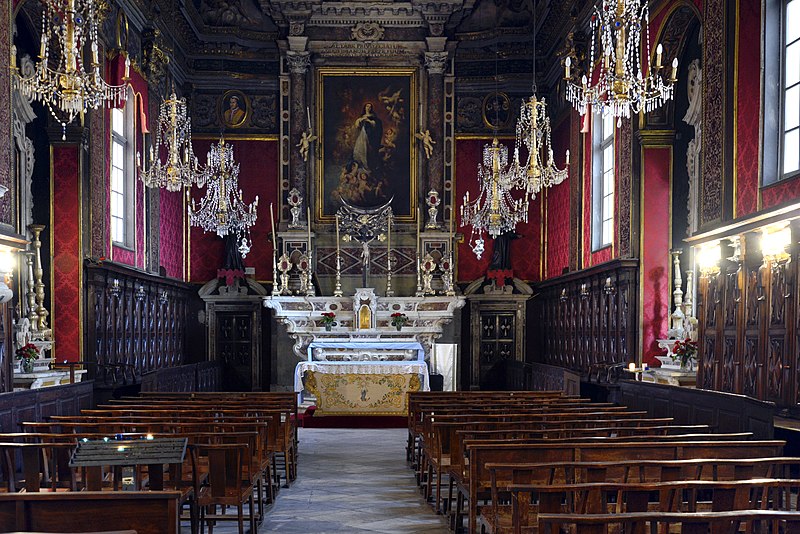 L'oratoire de l'Immaculée-Conception, dit A Cuncezziò, se situe à Bastia, rue Napoléon dans le quartier de Terra Vechja, près de la place du Marché, et a été classé monument historique en 2000. La confrérie qui l'a fondé remonte à la fin du XVIe siècle et la chapelle a été achevée au début du XVIIe siècle. Le bâtiment, simple rectangle maçonné, conserve dans ses grandes lignes un décor originel daté de 1618 avec une voûte en berceau percée de lunettes et un rythme vertical marqué par des pilastres corinthiens soutenant un riche entablement à modillons. Deux petites chapelles ont été aménagées dans l'épaisseur des murs de la nef en 1701 et 1704, et le portail baroque de la façade a été ajouté en 1704. La façade a ensuite été remaniée et des plaques de marbre de Carrare y ont été posées en 1858-1859. L'oratoire a joué différents rôles au cours de son histoire : il fut église paroissiale du quartier de Terra Vechja entre 1636 et 1666 pendant la reconstruction de Saint-Jean-Baptiste, puis, au XVIIIe siècle, salle de délibérations politiques. En 1795 il servit de parlement du royaume anglo-corse, où un trône fut placé devant l'autel pour symboliser la présence du roi George III, et il a aussi été utilisé comme hôpital militaire. Les décors intérieurs relèvent du style baroque et comptent parmi les plus riches de Bastia, fruits du travail de peintres, sculpteurs, stucateurs, doreurs, marbriers, ébénistes, orfèvres et tapissiers. Les stucs des chapiteaux, corniches et moulures de la voûte datent de 1618-1619 ; ils ont été dorés à la feuille au début du XIXe siècle. Le décor peint de la voûte, de composition soignée et riche en coloris et dorures, date du XVIIe siècle et a été complété en 1855 par une équipe de peintres italiens dirigée par le florentin Bernardo Francesci Sieni. Les murs sont ornés de damas de soie et les pilastres sont recouverts d'un velours de Gênes daté de la fin du XVIe siècle, un usage introduit à Bastia par la tradition génoise dès 1589. Les stalles en noyer sculpté, réalisées à la fin du XVIIIe siècle, sont l'œuvre de plusieurs ébénistes bastiais. Le maître-autel en marbres polychromes date de 1763 ; le retable, daté de 1624, présente des incrustations de marbre polychrome, des colonnes imposantes et trois statues. Un chandelier d'argent en forme de demi-lune (meza luna), réalisé par l'orfèvre siennois Gaetano Macchi vers 1856-1857, figure sur l'autel et n'était utilisé que lors de grandes fêtes. De grands lustres commandés à Gênes éclairent l'oratoire depuis 1864. L'oratoire abrite également une statue polychrome en bois de l'Immaculée Conception, datable du XVIIIe siècle. Le parvis présente une mosaïque de galets représentant le soleil et la lune, selon une tradition régionale d'origine génoise. Parmi les tableaux, on trouve au maître-autel une copie de l'Assomption de Murillo commandée à Léon Olivié, et, derrière l'autel de droite, un Portement de croix anonyme du début du XVIe siècle, l'un des plus anciens tableaux de Bastia. Ce Portement de croix, qui rappelle le Spasimo di Sicilia attribué à Raphaël, pourrait provenir d'une des anciennes églises disparues de la ville ; il a fait l'objet d'une restauration en 2019. L'ensemble témoigne de l'évolution du lieu du XVIIe au XIXe siècle et de l'importance des arts décoratifs dans le patrimoine religieux bastiais.