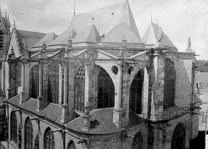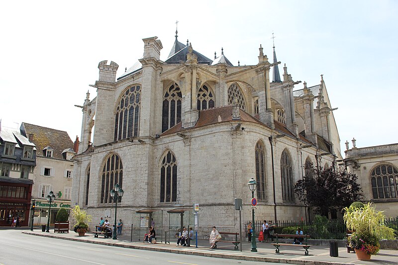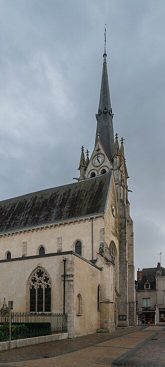 La construction d'une chapelle débutée en 1183 marque les origines du site ; l'édifice est agrandi au début du XIIIe siècle par une nef et un chœur élargi, puis devient église paroissiale en 1377, moment où lui sont ajoutés chœur et transept. En juillet 1525 une partie de la ville, dont l'église, est incendiée ; le roi apporte une aide dès 1526 pour une reconstruction qui va durer près d'un siècle, interrompue par les troubles des guerres de Religion (1562‑1567) et les pillages huguenots. Les voûtements des chapelles et la reconstruction du chœur selon le modèle de l'église‑halle se poursuivent aux XVIe et XVIIe siècles, avec des étapes datées dans les sources (voûte d'une chapelle en 1545, voûtes du flanc gauche en 1571‑1572, marché de construction signé en 1574, achèvement du chœur au début du XVIIe siècle). Après des modifications limitées aux XVIIe et XVIIIe siècles et la reconstruction du clocher en 1656, l'édifice est transformé pendant le XIXe siècle par la mise en place de voûtes en briques, la surélévation du clocher et l'installation de nouvelles cloches fondues par Dormoy. La sacristie et le portail du transept nord datent de 1898 ; des restaurations récentes ont concerné le crépi des deux premières travées (1968‑1969) et la remise en état de la chapelle Sainte‑Monique et de la chapelle Saint‑Vincent (2010‑2013).