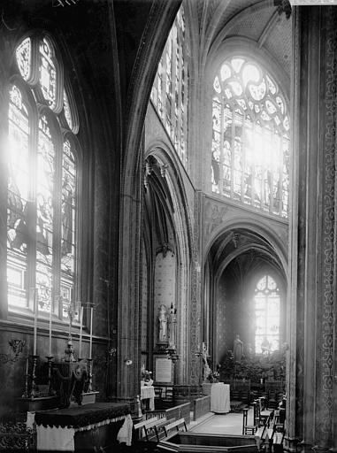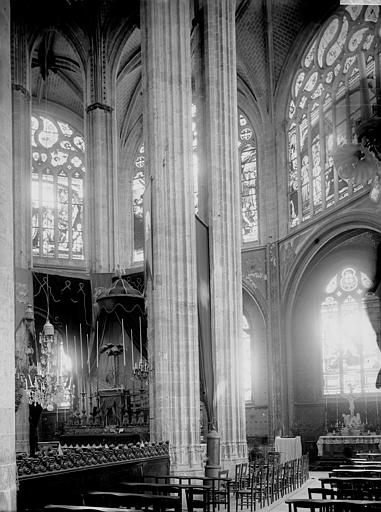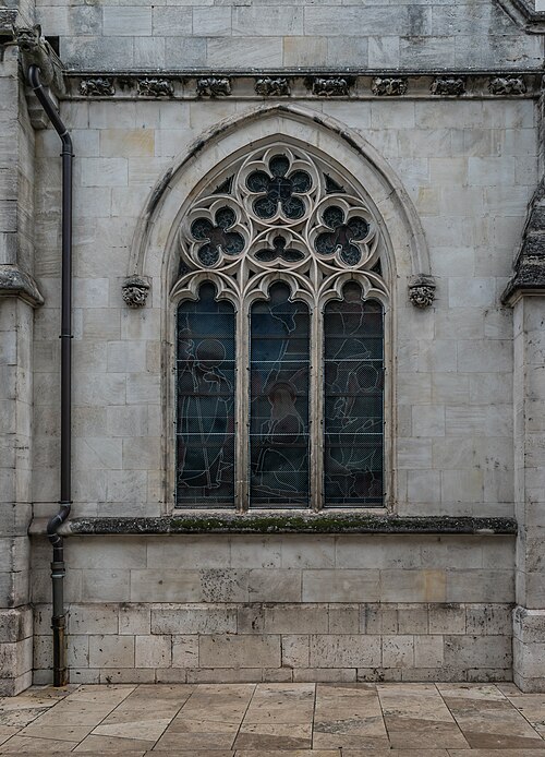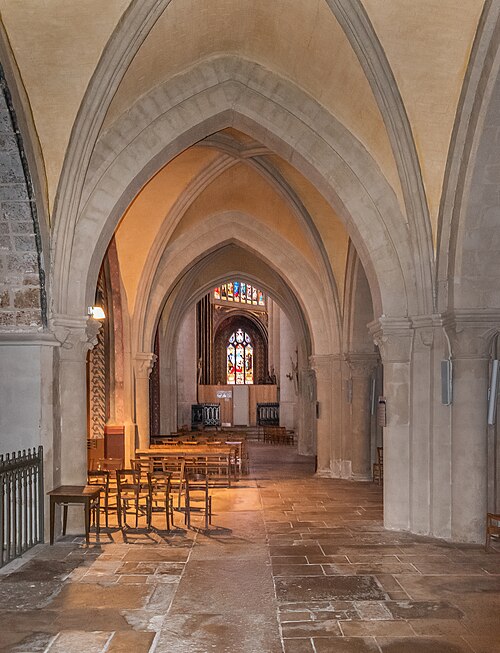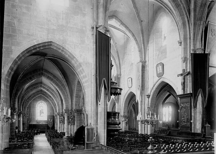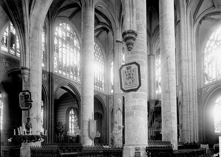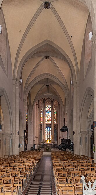Le chœur est la partie la plus remarquable : traité en église‑halle, il montre des vaisseaux très élancés de même hauteur, évoquant certaines églises gothiques tardives d'Italie et d'Allemagne. Le déambulatoire conserve des décors peints fragmentaires — quadrilobe avec tête de bœuf et griffes d'aigle — et trois parois ornées d'un motif de pélican ; la chapelle Saint‑Vincent et la chapelle Sainte‑Monique ont été restaurées entre 2010 et 2013. La nef, dont la datation se situe entre la fin du XIIe et le début du XIIIe siècle, présente une élévation à deux niveaux avec arcades en arc brisé sur piles composées et fenêtres hautes ; l'ensemble est couvert de voûtes d'ogives quadripartites.