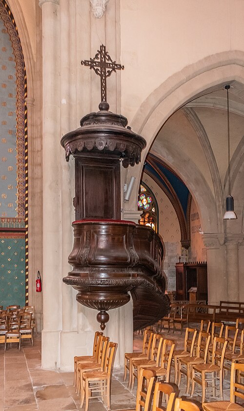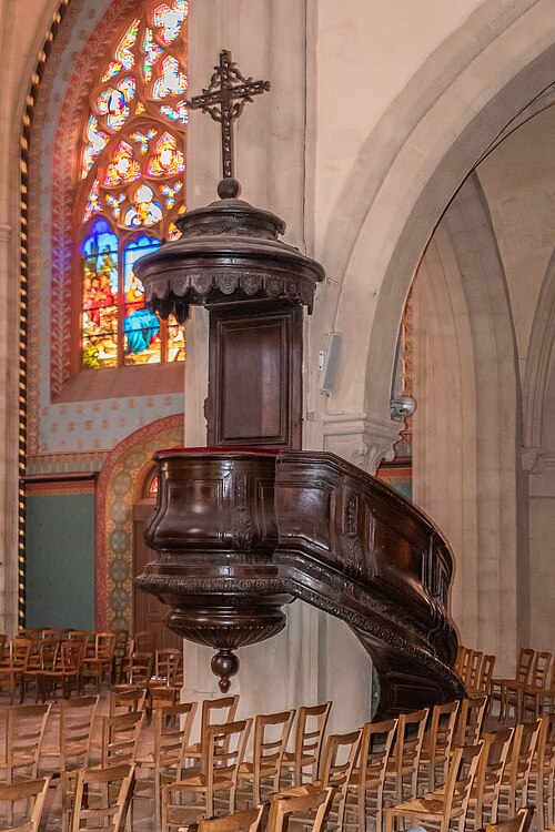 Le mobilier de l'église comprend de nombreux éléments classés et inscrits au titre des monuments historiques : credence en bois sculpté et marbre de style Louis XVI, stalles et prie‑dieu du XVIe siècle, panneaux et dossiers sculptés, banc d'œuvre avec Noli me tangere, confessionnal du XVIe siècle, chaire à prêcher de style Louis XIV, crucifix du XVIIe siècle, calice en argent doré réalisé par l'orfèvre Séverin Parisy, plusieurs statues en pierre ou bois doré du XIVe au XVIIIe siècle (certains éléments ayant été dérobés), un haut‑relief de la Cène du XVIe siècle, et plusieurs tableaux datés des XVIe et XVIIe siècles dont une Sainte‑Madeleine attribuée à l'école des Carrache. S'y ajoutent des objets inscrits tels que châsses‑reliquaires, tabernacle, lustres, un grand ensemble de stalles du XVIIIe siècle et le tableau monumental Le concert des Anges (1807) d'Ange René Ravault.