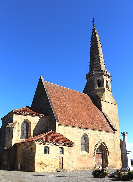 L'église, élevée au XVe siècle sur un plan carré, avait à l'origine son chœur sous le clocher. Après que la foudre eut frappé plusieurs fois ce point, l'autel fut déplacé dans un nouveau chœur aménagé à l'ouest de l'édifice ; cette intervention demeure la seule modification du plan primitif. L'ancien chœur sous le clocher est orné de fines colonnettes aux chapiteaux historiés. La tribune conserve une voûte peinte du XVIe siècle, dont trois des quatre panneaux sont préservés. L'organisation intérieure du clocher permettait son emploi comme donjon de défense, avec meutrières, mâchicoulis et trois étages séparés. La flèche est creuse.