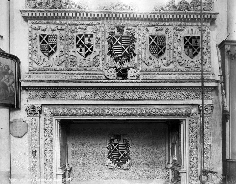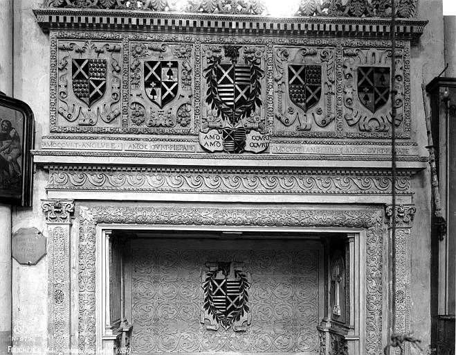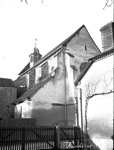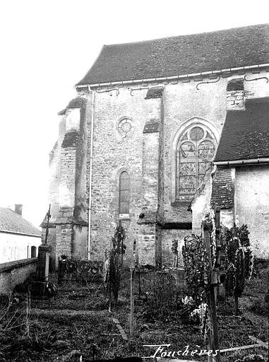 L’église de la Nativité-de-la-Sainte-Vierge, située à Fouchères dans l’Aube, présente une nef romane ainsi qu’un chœur et un transept datés du début du XIIIe siècle, comme l’indiquent les chapiteaux à crochets du chœur. On observe encore des traces de peinture ocre rouge sur les nervures des voûtes de cette partie. La nef comprend trois travées plafonnées et un bas-côté au nord. Le transept double est suivi d’un chœur à chevet plat, percé d’un triplet et d’une rosace. Un petit clocher s’élève au-dessus de la nef, au niveau de la troisième travée. Plusieurs verrières ont été réalisées à la fin du XIXe siècle par le verrier Tamoni, notamment celles consacrées à saint Henri, sainte Marguerite et au Christ entouré des apôtres. Les personnages du triplet du chevet sont l’œuvre de Gruber et datent de 1940. La seule verrière ancienne de l’église, datée de 1575, se trouve dans la première travée nord du transept ; elle se compose de deux lancettes en plein cintre, coiffées d’un tympan à oculus et de deux écoinçons. Les lancettes représentent la Mort de la Vierge en présence des apôtres et du donateur, Elion d'Amoncourt, abbé des abbayes de Saint‑Martin de Troyes et de Boulancourt et prieur de Fouchères, présenté par saint Benoît (ou peut‑être par saint Robert de Molesmes) devant un fond architectural de style Renaissance. Ce donateur a vraisemblablement engagé certaines transformations du bâtiment, notamment l’agrandissement des baies. La verrière de 1575 a été restaurée en 1861, en 1907 par Bonnot, puis en 1980 par Vinum ; une inscription au bas du vitrail mentionne la donation et la date. L’oculus montre l’Assomption de la Vierge entourée d’angelots. L’édifice est classé au titre des monuments historiques depuis 1840 et ses vitraux ont été classés au titre d’objet le 27 décembre 1913.