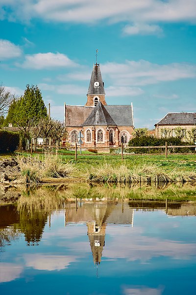 L'église de la Nativité-de-la-Sainte-Vierge de Villers-Campsart se trouve sur la commune de Villers-Campsart, dans le sud-ouest du département de la Somme, au sud-ouest d'Amiens. Construite au XVIe siècle en brique, l'édifice est de style gothique flamboyant. Elle est inscrite au titre des monuments historiques par arrêté du 19 février 1926. L'intérieur conserve un retable en bois polychrome représentant Marie-Madeleine, provenant de l'ancienne chapelle du château ; la sainte y est couchée au milieu des rochers et tient un livre dans la main gauche. Le paysage boisé du retable laisse apparaître un château-fort dont les tours dépassent des murailles, traditionnellement identifié à la forêt et au château d'Arguel. À gauche du retable, un petit personnage agenouillé sur un prie-dieu armorié est Jean de la Rivière, seigneur du lieu ; à droite, dans la même attitude, se trouve Marie de Benserade, la châtelaine. Une banderole au-dessus de Marie-Madeleine porte en lettres gothiques l'exhortation « Vous qui péchez, ne désespérez point ». Sur la poutre de gloire, le Christ en bois est accompagné de la Vierge et de saint Jean : le visage, expressif mais dépourvu d'impression de souffrance, est penché sur l'épaule droite, les bras s'élèvent au-dessus de la tête et se rapprochent de la verticale, l'ensemble exprimant douceur et amour. La Vierge est drapée d'une robe à plis et d'un grand manteau, les mains jointes et le visage abrité par une grande coiffe ; saint Jean porte une longue robe serrée à la taille et tourne la tête vers le Christ. L'église conserve également plusieurs statues et sculptures, dont deux représentations de la Vierge à l'Enfant (dont une assise en bois), une statue assise de sainte Barbe, un groupe sculpté en bois de la Vierge de Pitié et un bas-relief en pierre représentant la Descente de croix.