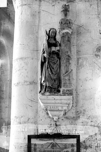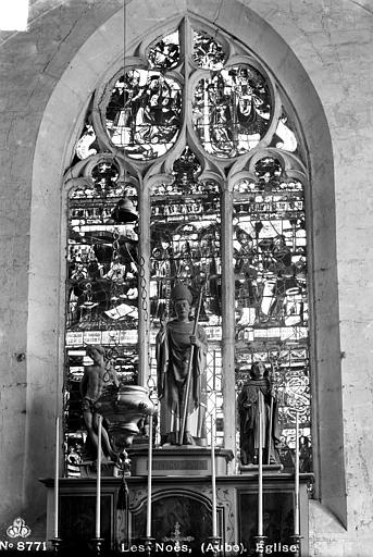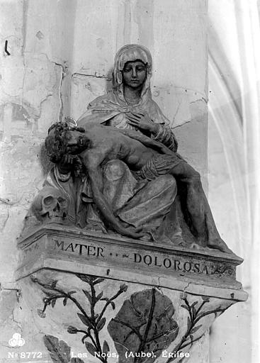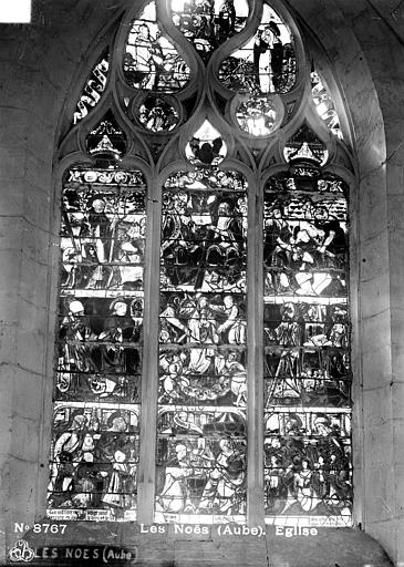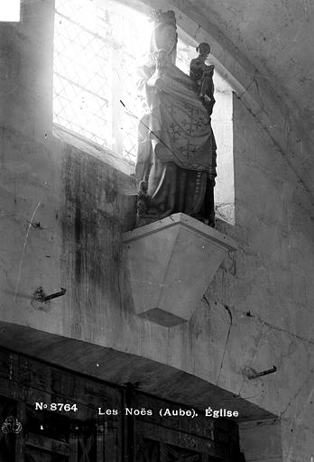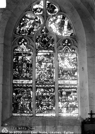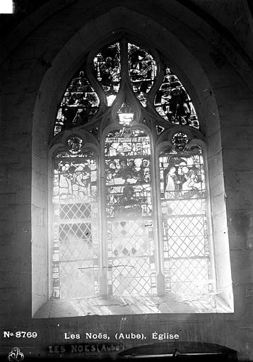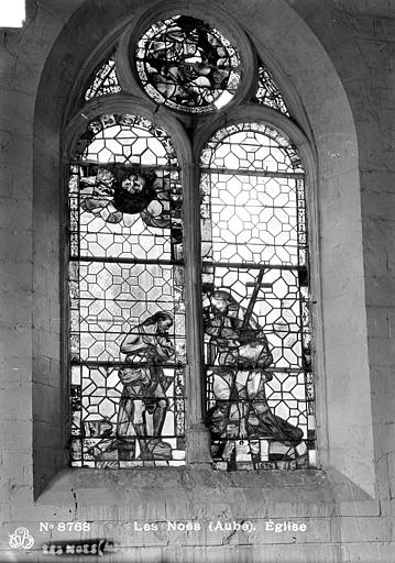L'église de la Nativité-de-la-Vierge se trouve aux Noës-près-Troyes, dans le département de l'Aube. Datée du XVIe siècle, elle présente un plan rectangulaire avec une abside en saillie. La nef comporte cinq travées soutenues par des piliers ronds. Le mobilier comprend des stalles du XVIe siècle, une croix processionnelle en bronze du XIIe siècle actuellement conservée au trésor de la cathédrale de Troyes, et des fonts baptismaux de 1654 réalisés par Nicolas Herluisson. Parmi les documents iconographiques figurent un dessin de Charles Fichot représentant l'ancien clocher ainsi que des représentations des stalles, des fonts et de la croix du XIIe siècle. À l'origine, la paroisse ne possédait qu'une chapelle dépendant de Saint-Martin-ès-Vigne, placée sous la collation de l'abbé de Montiéramey. Cette chapelle est devenue église paroissiale en 1174 par accord de l'évêque et de l'abbé. L'édifice a été classé au titre des monuments historiques en 1907.