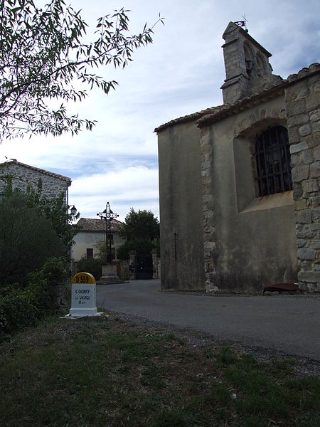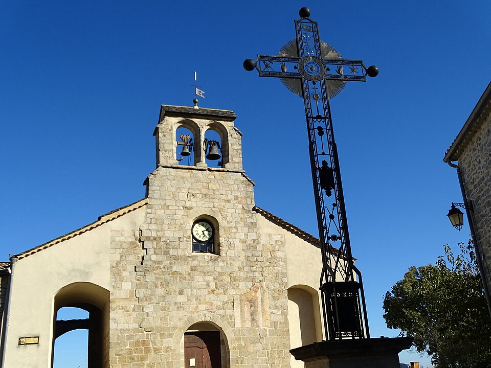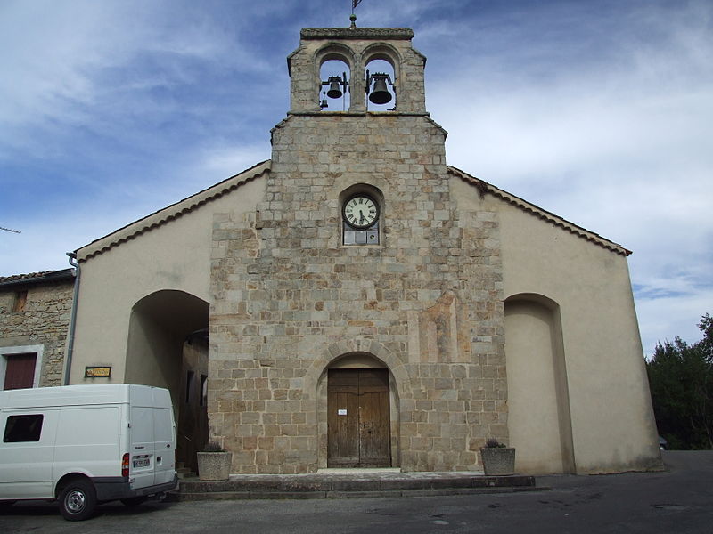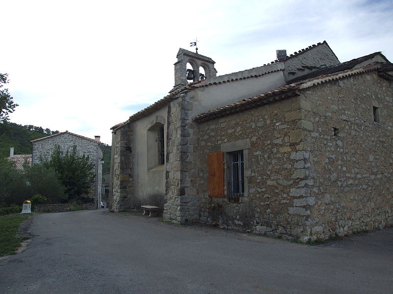 La plus ancienne mention du village figure dans une charte carolingienne. Le prieuré-cure, longtemps annexe de celui de Bonnevaux, dépendait du diocèse de Viviers et était dédié à la Nativité-de-la-Vierge et à Saint-Martin. L'église a vraisemblablement été édifiée au XIIe siècle sur l'emplacement d'un sanctuaire antérieur : des pierres de réemploi, blanches et taillées au droit, contrastent avec le grès brettelé de l'abside et des murs actuels. Les différences observées entre les deux travées de la nef suggèrent qu'elles résultent de deux campagnes de construction au XIIe siècle. Au XVIIe siècle, un petit clocher-mur à deux arcades est élevé sur le mur du fond. En 1703, l'église est incendiée par les Camisards ; les deux chapelles sud datent vraisemblablement de cette époque. La façade ouest conserve les traces d'une importante décoration peinte en trompe-l'œil, peut‑être du XVIIe siècle, représentant la superposition des ordres toscan et ionique sur deux registres. Cet exemple de peinture extérieure à décor d'architecture en trompe-l'œil est rare dans la région.