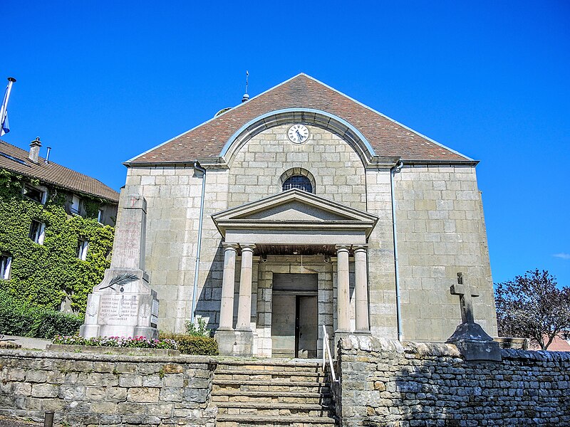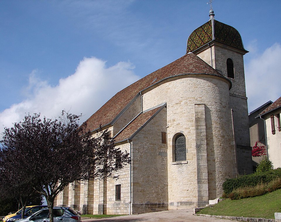 L'église paroissiale, dédiée à la Nativité-de-Notre-Dame, se situe à Montfaucon (Doubs), près de Besançon. Une première église fut fondée en 1311 au pied du château de Montfaucon et rétablie après l'incendie de 1552. Dès 1743 s'engagèrent de difficiles pourparlers pour sa reconstruction, puis la décision de transférer l'édifice fut prise en 1773 ; le projet de l'architecte Louis Beuque fut réalisé de 1775 à 1785. Un porche en portique a été ajouté à la façade en 1826. De plan basilical et de style néoclassique, l'édifice présente trois nefs voûtées d'arêtes reposant sur des doubleaux ornés de caissons et évoque une église-halle. Seize colonnes doriques toscanes adossées aux murs rythment les collatéraux et, par des pilastres, correspondent aux colonnes du vaisseau central qui entourent aussi le chœur. La travée du chœur se termine par une abside ; la tour du clocher, coiffée d'un dôme impérial dit comtois, et la sacristie l'accompagnent. La façade, dotée d'un fronton curviligne, est précédée d'un porche soutenu par quatre colonnes doriques. L'église est inscrite au titre des monuments historiques depuis le 16 avril 2009. Des notices et ressources en ligne (Mérimée, Clochers de France, Observatoire du patrimoine religieux, Racines-Comtoises et portails régionaux) documentent cet édifice.