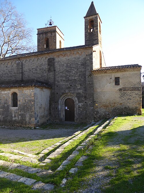 L'église de la Nativité-de-Saint-Jean-Baptiste, située à Saint-Jean-de-Buèges dans la vallée de la Buèges (Hérault, Occitanie), est attestée dès le XIe siècle et daterait vraisemblablement de la période comprise entre 1080 et 1102, moment où elle est rattachée au chapitre cathédral de Maguelonne. Elle figure sous le nom d'Ecclesia Sancti Johannis de Buia dans une bulle du pape Urbain II de 1095. De plan roman primitif, l'édifice se composait d'une nef de trois travées égales et d'une travée de chœur plus étroite, terminée par une abside semi-circulaire. Les parties romanes anciennes sont bâties en calcaire gris d'origine inconnue ; l'abside a fait l'objet d'une réfection importante en tuf jaune vacuolaire, signe d'une reprise après la destruction partielle du chœur, sans doute par les Protestants au XVIIe siècle ou lors de l'incursion des Camisards de Cavalier en 1703. Le même tuf a servi au décor latéral de la travée de fond de la nef, tandis que le mur proprement dit reste en pierre grise. Les élargissements des XVIIe et XVIIIe siècles — collatéraux, sacristie et deux clochers — ont modifié le volume originel de l'édifice. L'extérieur porte encore une litre et une bande maçonnée ornée d'armoiries. Classée au titre des monuments historiques depuis le 28 décembre 1984, l'église relève du groupe d'édifices des vallées de la Buège et de l'Hérault, sur le Causse de la Selle, où se conservent les formules du premier art roman. De taille moyenne et couverte de tuiles, l'église est élevée en pierre de taille assemblée en appareil irrégulier et percée de nombreux trous de boulin. Le chevet, de style roman lombard, est orné d'une frise à dents d'engrenage et de bandes lombardes composées d'arcatures reposant sur des modillons géométriques et des colonnes engagées semi‑cylindriques, dont les parties supérieures sont malheureusement détruites ; la maçonnerie y a été en grande partie remplacée par un blocage de mortier et de moellons. Un oculus circulaire perce le pignon qui surmonte le chevet. La travée de chœur, de même hauteur que le chevet, est rythmée par trois arcatures surmontées d'une frise de dents d'engrenage. La façade septentrionale, flanquée de chapelles tardives, présente une frise de vingt arcatures à modillons géométriques et quatre hauts pilastres saillants, tandis que la façade méridionale est masquée par un bâtiment accolé. La façade occidentale s'ouvre par une grande baie en plein cintre et est surmontée d'un clocher carré percé d'une baie sur chaque face ; son portail remarquable à triple ébrasement, colonnes et arc torique présente une voussure externe aux claveaux plus étroits à la base qu'au sommet, donnant à l'extrados un aspect légèrement brisé comparable à celui d'autres églises du secteur. L'église se trouve à une cinquantaine de kilomètres au nord‑ouest de Montpellier, dans une vallée qui abrite également les églises romanes de Notre-Dame de Pégairolles-de-Buèges et de Saint-André de Saint-André-de-Buèges.