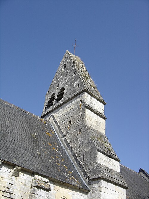 Le clocher‑mur du XVIIe siècle sépare la nef du chœur remanié de la même époque ; la cloche actuelle, fondue en 1868, remplace les deux cloches d'origine. Au‑dessus de la sacristie se trouve une chambre éclairée par deux grandes fenêtres, équipée d'une cheminée de pierre, ainsi qu'un potager muni d'une pierre à évier permettant de laver légumes et vaisselle et de cuire des repas. Un cadran solaire est fixé sur un contrefort plat du côté sud pour capter le maximum d'ensoleillement. Une chapelle accolée au chœur en 1748 a été détruite au XIXe siècle. Dans le cimetière se trouve une pietà en fonte signée J. Sanson (1869).