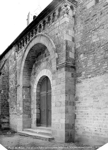 L'église paroissiale de la Sainte-Trinité de Pont-de-Ruan, affectée au culte catholique, se situe dans la commune de Pont-de-Ruan en Indre-et-Loire. Elle est implantée à une centaine de mètres de la rive gauche de l'Indre, au sommet d'une butte qui domine la rivière d'une dizaine de mètres, et une fontaine réputée miraculeuse se trouve à proximité. Selon Grégoire de Tours, l'évêque Brice fit ériger une église à Pont-de-Ruan vers 444 en réutilisant les murs d'une maison gallo-romaine abandonnée depuis plus d'un siècle. L'édifice aurait été peut-être dévasté lors des raids vikings sur la Loire au IXe siècle et reconstruit à partir du début du XIe siècle. Le portail principal et certaines modifications des baies de la nef datent du XIIe siècle, tandis que le chœur appartient au XIIIe siècle. Un clocher‑peigne a été ajouté à l'extrémité orientale de la nef à l'époque moderne. Un cimetière installé sur le parvis a été utilisé du XIIe au XIXe siècle, et des sépultures à l'intérieur de l'église couvrent la période du XIVe au XVIIIe siècle. Le portail de l'église est inscrit au titre des monuments historiques depuis 1926. Honoré de Balzac évoque l'édifice dans Le Lys dans la vallée, le décrivant comme « une vieille église pleine de caractère ». Pour approfondir, on peut consulter le Dictionnaire des communes de Touraine dirigé par Jean‑Mary Couderc, La Touraine archéologique de Robert Ranjard, ainsi que les notices disponibles dans les bases Mérimée et Clochers de France.