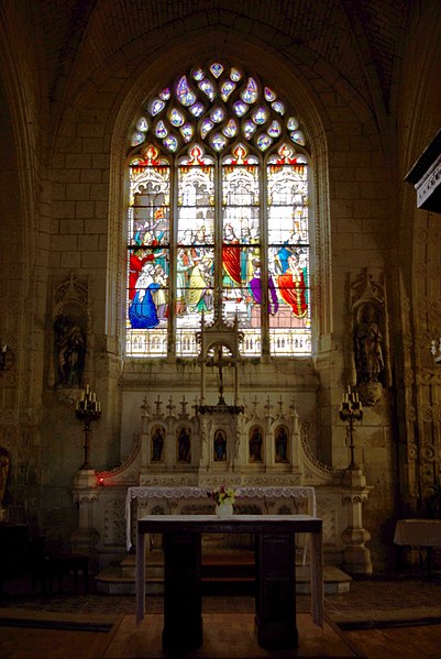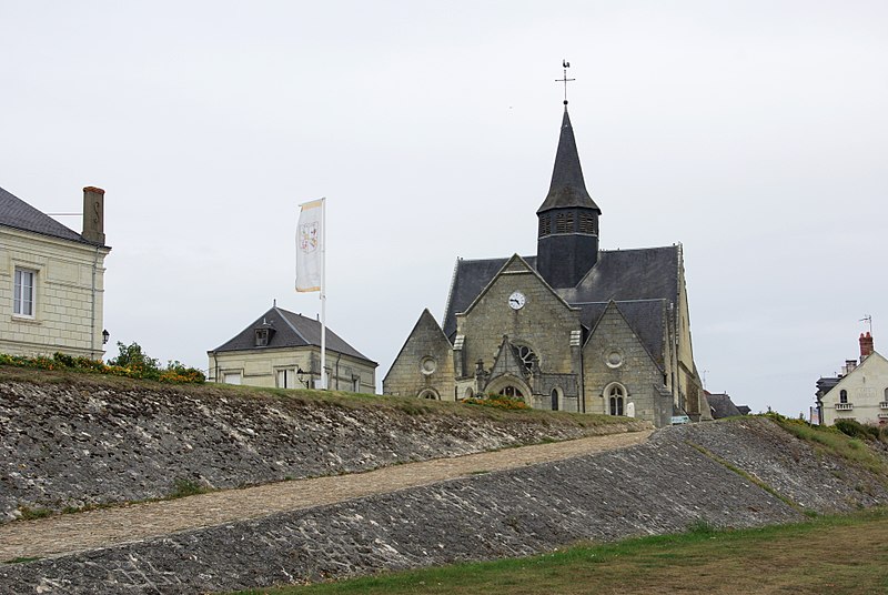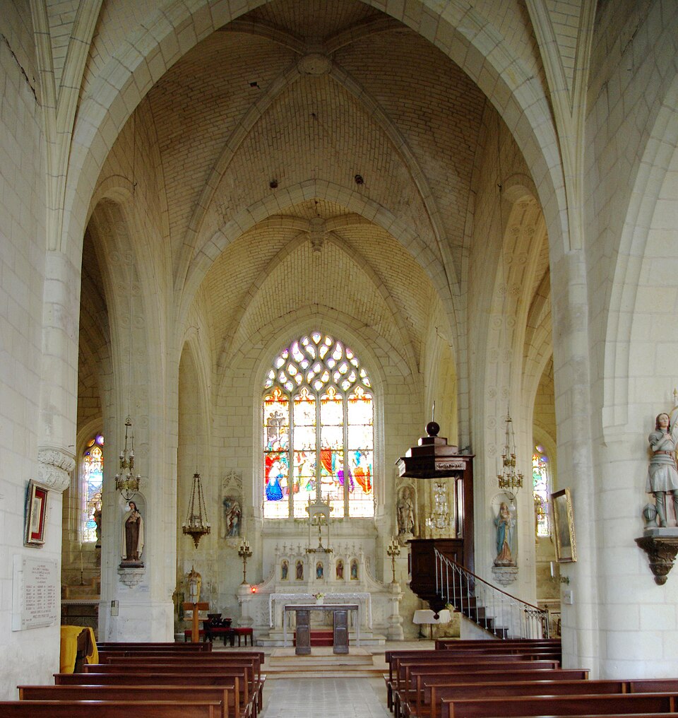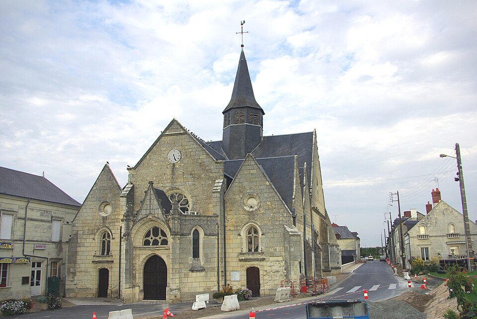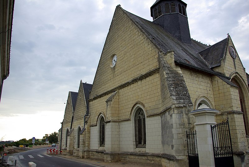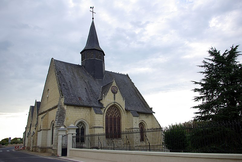 Démolie par une inondation de la Loire en 1450, l'église fut reconstruite en 1519-1520 grâce au soutien financier des chanoines de Saint-Martin de Tours. L'édifice fit l'objet d'une restauration partielle en 1693. La façade est précédée d'un porche de plan trapézoïdal, voûté d'ogives. L'église comprend une nef flanquée de deux collatéraux, tous voûtés sur croisées d'ogives, et les trois vaisseaux se terminent par un chevet plat. À l'exception des percements de la façade et de la fenêtre éclairant la seconde travée du bas-côté nord, de style Renaissance, l'ensemble des baies est de style flamboyant.