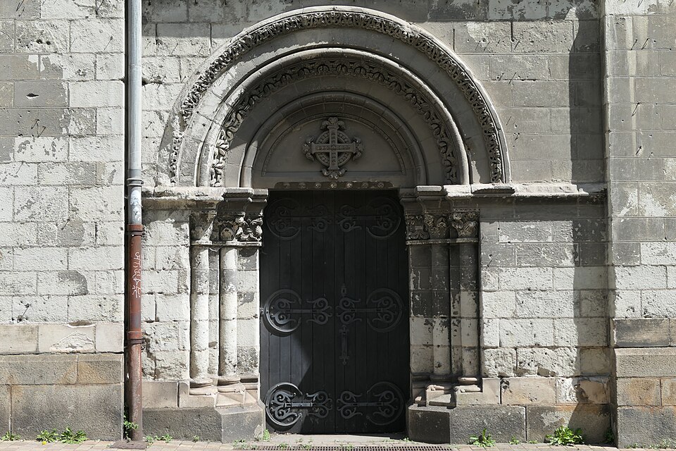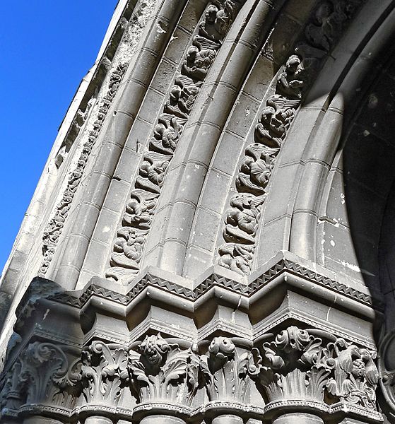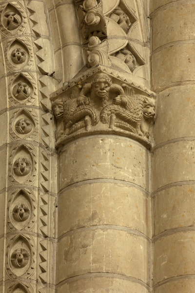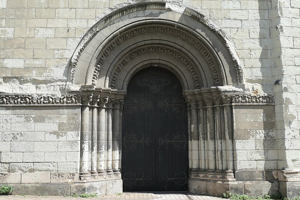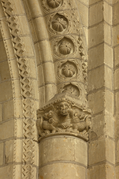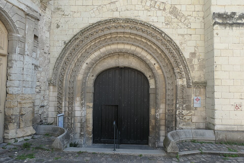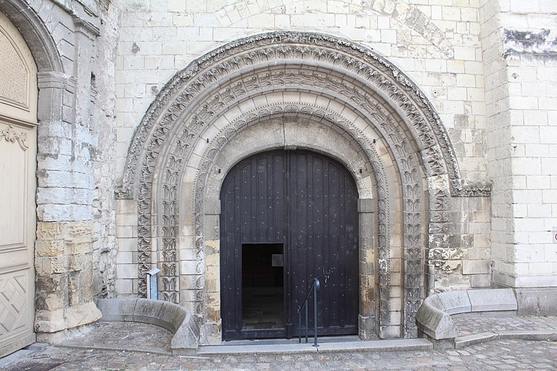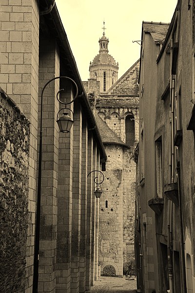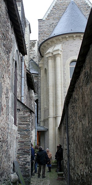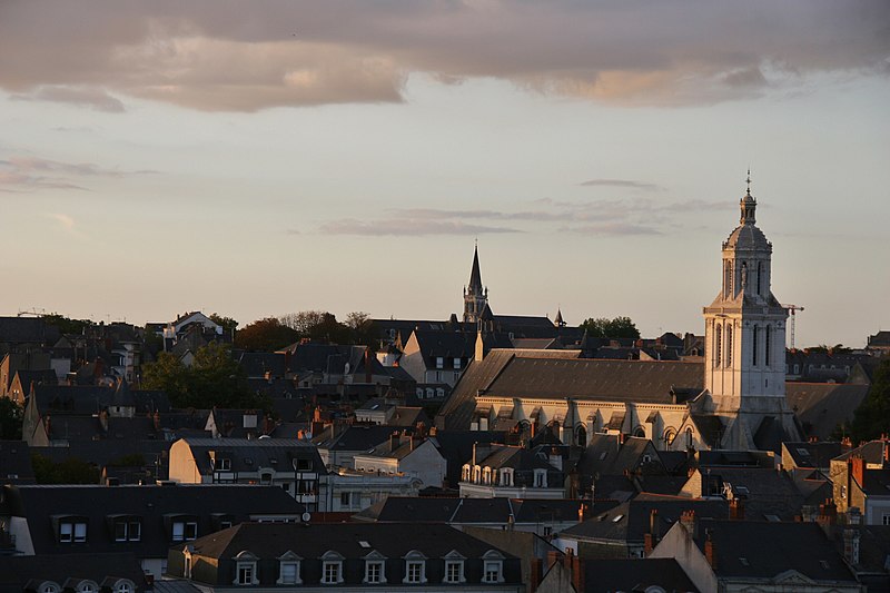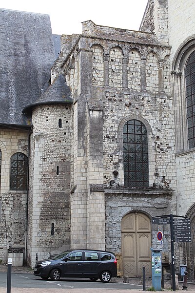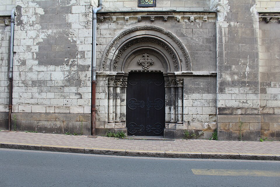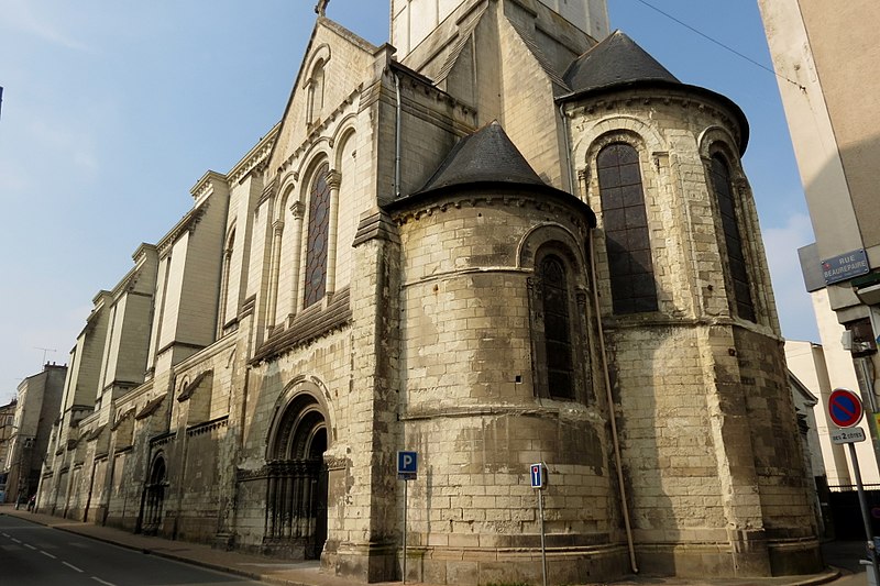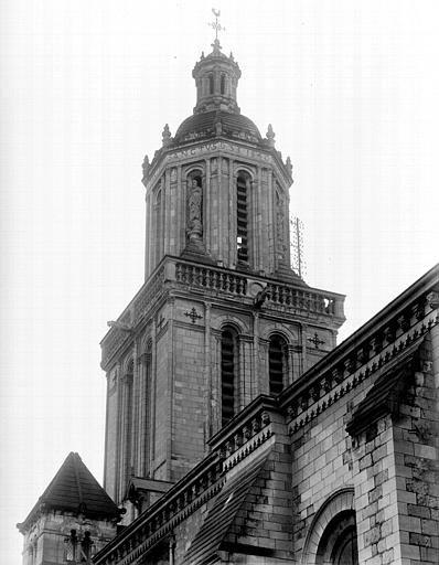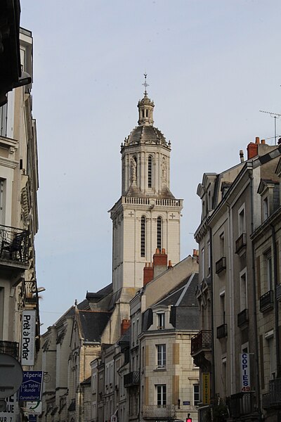 Le lanternon élevé à la croisée, attribué à Jean de l'Espine, date de 1540, tandis que les statues des évangélistes appartiennent au XIXe siècle. La façade sud, donnant sur le boulevard Descazeaux, présente un porche néo-roman et des frises ornées de mascarons humains et animaux; le portail roman y a été restauré au XIXe siècle. L'église a un plan à nef unique avec des chapelles latérales peu profondes ; la nef est séparée du chœur par un arc triomphal flanqué de passages berrichons. La voûte, répartie en trois travées et demie, est renforcée par des nervures irrégulières et présente des clés de voûte toutes différentes, dont une clé centrale dite de « voûte suspendue », caractéristique du premier gothique angevin.