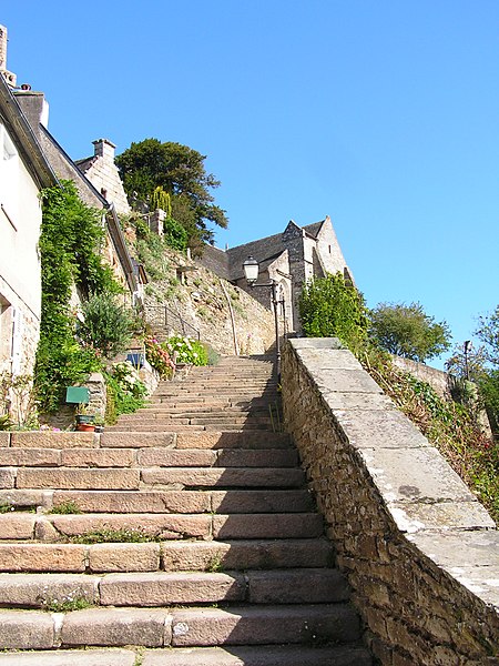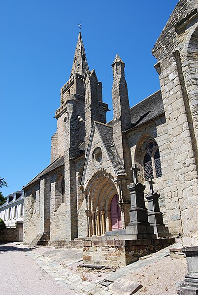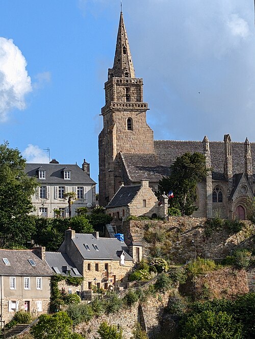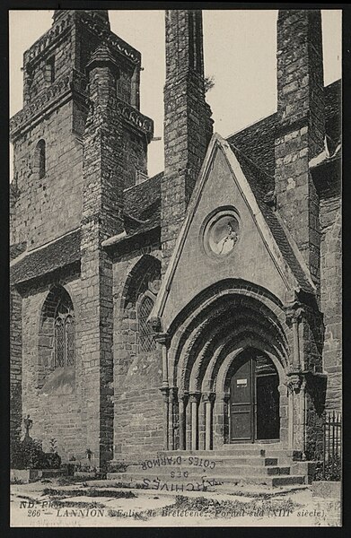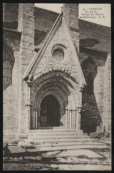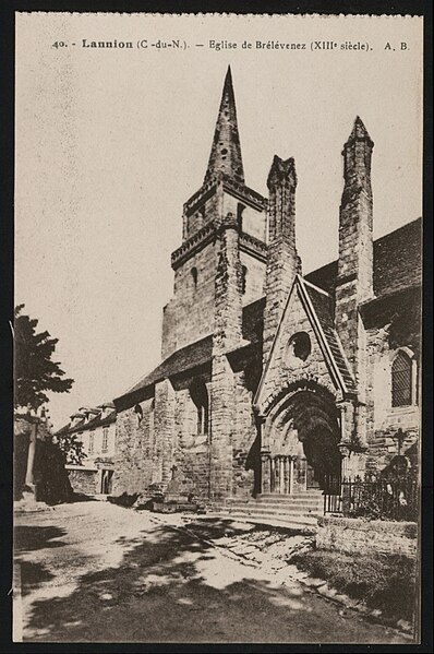 L'église de la Trinité de Brélévenez, située sur la colline du Crec'h Tanet à une cinquantaine de mètres d'altitude, domine la ville de Lannion et constitue un témoin remarquable de la transition entre l'art roman et l'art gothique. On y accède depuis le centre-ville par un escalier de 140 marches bordé de maisons. Bâtie sur des substructions du XIe siècle, l'édifice semble avoir été édifié à partir de la fin du XIIe siècle, le chœur et la crypte constituant les premières parties. Le chœur, élevé sur une crypte remaniée en 1809, présente des caractères de transition entre le XIIe et le XIIIe siècle. Le transept très développé comporte deux chapelles orientées formant un faux-transept, tandis que la nef et le clocher paraissent dater du XVe siècle. L'identité du commanditaire reste inconnue : l'édifice ne semblait pas être l'église paroissiale, mais le sanctuaire d'un établissement monacal, attribué par tradition aux Templiers ou aux Trinitaires, ou parfois aux chevaliers de l'Ordre de Montjoie ; cette hypothèse s'appuie notamment sur des pierres tombales gravées de la croix de Malte et d'une épée. Des travaux et aménagements importants interviennent aux siècles suivants : ajout des chapelles latérales au XIIIe siècle, fortification au XIVe siècle par Olivier V pendant la guerre de Succession de Bretagne, puis démilitarisation et reprise des maçonneries entraînant la réfection des voûtes des bas-côtés et l'agrandissement des chapelles. Le clocher est élevé au XVe siècle et le chœur est remanié au XVIIe siècle pour recevoir l'imposant retable baroque commandé en 1660 par le comte Pierre de Laval et son épouse. L'église devient paroissiale au XVIIIe siècle en remplacement de celle du Rusquet ; la crypte est alors remaniée et la chapelle du Mont Carmel est aménagée à la jonction de la nef et de la chapelle nord. La sacristie, reconstruite en 1845, obstrue des fenêtres romanes, et l'escalier reliant l'église à la ville basse est reconstruit au milieu du XIXe siècle. Classée monument historique en 1909, l'église a fait l'objet de restaurations dans les années 1990 et a été fermée par la municipalité pour raisons de sécurité à compter du 15 février 2025. L'édifice, long de plus de cinquante mètres, présente un plan en croix latine s'achevant par un chœur à déambulatoire et une chapelle axiale unique ; les deux chapelles latérales, commencées au XIIIe siècle et agrandies au XIVe, créent une légère asymétrie en raison de la supériorité de la chapelle nord. Les matériaux trahissent différentes campagnes : le granit rosé du Yaudet constitue les parties romanes tandis que le schiste vert extrait au flanc de la colline est employé lors des reprises et des ajouts postérieurs. Le chevet, en granit rose et de conception encore romane, se distingue par des contreforts formés de colonnes engagées aux chapiteaux sculptés, des modillons figurant des têtes usées et de hautes fenêtres en plein cintre, témoignant d'une influence saintongeaise. Le porche sud, également en granit rose et daté de la fin du XIIe siècle, présente des voussures à profil brisé ornées de motifs en zigzag retombant sur des colonnettes aux chapiteaux sculptés ; deux colonnettes superposées supportent des masques et l'archivolte finale, le pignon étant percé d'un oculus aveugle surmonté de trois pilastres datés de 1639. Le côté sud est renforcé par des contreforts et percé de fenêtres gothiques à remplages ; le transept sud en schiste porte une fenêtre flamboyante déplacée lors de la construction de la sacristie, et la tour Plomb, de faible hauteur, sert de tour de guet datant du XIVe siècle. Un ossuaire en granit du XVe siècle, provenant de l'ancienne église du Rusquet, est adossé à l'est du transept, tandis que le clocher-porche ouest, en granit rose du XVe siècle, s'achève par une chambre des cloches et une flèche octogonale ajourée, chaque niveau étant ceint d'une balustrade d'arcades trilobées. À l'intérieur, la nef longue de onze travées s'ouvre directement sur le chœur ; un lambris peint repose sur des sablières sculptées, les grandes arcades en arc brisé s'appuient sur de fortes piles rondes qui présentent un léger renversement en raison de la poussée des voûtes des bas-côtés. Un triforium aveugle composé de baies géminées en arc brisé court sur la nef et le chœur, tandis que les bas-côtés sont voûtés d'ogives dont la reprise à la fin du XIVe siècle est attestée par les armoiries figurant sur les clés de voûte. Le chœur, légèrement surélevé, repose sur la crypte et s'entoure d'un déambulatoire voûté d'ogives ; les ogives du déambulatoire présentent un profil archaïque souligné par un gros tore, et les chapiteaux offrent des décors de feuillages, de têtes et d'éléments végétaux. Une chapelle axiale dédiée à sainte Marie-Madeleine, couverte d'une voûte d'ogives à multiples nervures, ouvre sur le déambulatoire, ce plan témoignant de l'importance et de l'ambition des commanditaires. Le mobilier est riche : la crypte abrite une Mise au Tombeau polychrome du XVIIIe siècle de l'atelier Guérin classée, l'église possède cinq retables classés dont l'immense retable baroque de 1660 d'Olivier Martinet, quatre autres retables du XVIIe siècle ornent les chapelles et plusieurs sculptures classées datent des XVe et XVIe siècles. On y trouve en outre un bas-relief du XVe siècle au-dessus de la porte de la sacristie, un grand bénitier médiéval réutilisé, une cuve baptismale du XVe siècle acquise au XIXe siècle, une chaire et un lutrin du XVIIIe siècle de l'atelier Guérin, et un buffet d'orgue réalisé par Jules Heyer en 1862, restauré et étendu en 1980 par Jean Renaud.