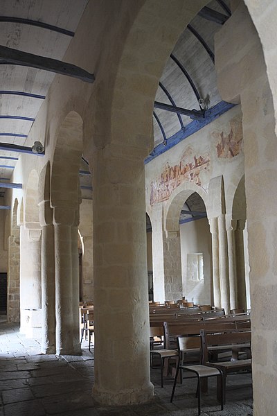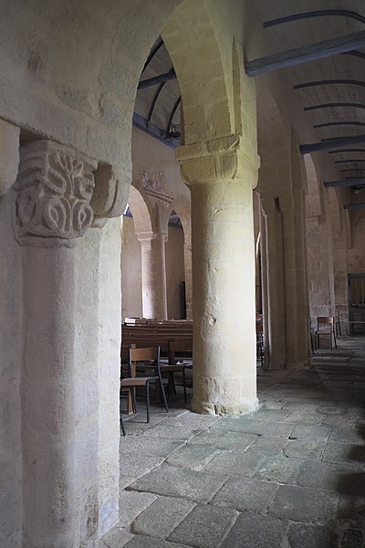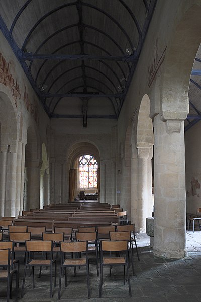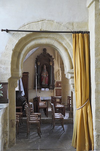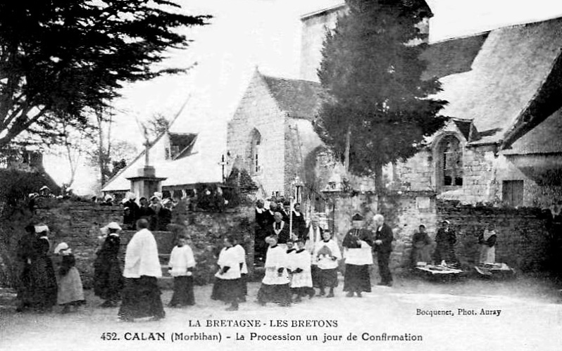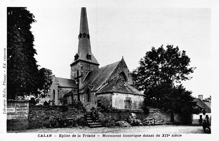 L'église de la Trinité, située au bourg de Calan (Morbihan), présente un plan en croix latine. Son origine reste incertaine et a parfois été attribuée aux Templiers ; elle est mentionnée pour la première fois en 1387 dans les titres de la cathédrale de Vannes et a été classée au titre des monuments historiques le 25 novembre 1930. La nef et la croisée du transept semblent appartenir aux XIe–XIIe siècles, tandis que les bras du transept pourraient dater du XIIIe siècle ; l'édifice a connu d'importants remaniements aux XVe siècles. La croisée, d'inspiration romane, se distingue par la multiplication de colonnettes engagées, consoles et chapiteaux sculptés reposant sur des piles composées, et par de grands arcs à triple rouleau ; elle est couverte d'une charpente à solives. La nef à trois vaisseaux, couverte de charpente, s'ouvre sur ses bas-côtés par des arcades en plein cintre à simple rouleau, reposant sur une alternance de piliers carrés, colonnes et piles composées ; aucune baie haute n'éclaire aujourd'hui la nef. Le chevet plat du chœur, reconstruit au XVe siècle, s'ouvre sur les collatéraux par des arcatures brisées. Une sablière du chœur porte la date 1425, et la charpente ainsi que d'autres sablières sont également signalées en 1465. La tour carrée de la croisée, de type romane, est surmontée d'une flèche de charpente refaite au début du XIXe siècle ; le portail occidental a été reconstruit au XIXe siècle. Une galerie extérieure longe tout le mur sud de la nef, depuis la croisée jusqu'au pignon ouest ; son extrémité occidentale est compartimentée en ossuaire et elle est soutenue par des colonnes de pierre à chapiteaux reposant sur un muret qui s'ouvre, au centre, sur une porte sud en plein cintre. Les chapiteaux romans de la nef et de la croisée forment une série remarquable, ornés de motifs végétaux stylisés, d'entrelacs, de volutes et de formes géométriques privilégiant l'abstraction, dans la veine de la sculpture romane bretonne — on retrouve des affinités plastiques avec plusieurs églises du Pays Pourlet (Saint-Pierre de Ploërdut, Saint-Beheau de Priziac, Saint-Pierre-et-Saint-Paul de Langonnet). Des fragments de peintures murales romanes mis au jour en 1986 représentent notamment l'Entrée du Christ à Jérusalem au sud, la Cène au nord et un vestige d'une représentation des Damnés sur le mur gouttereau sud. L'église conserve un mobilier riche comprenant une Vierge à l'Enfant du XVe siècle, un bénitier et un bas-relief de l'Annonciation du XVIe siècle, ainsi que retables, stalles, bannières et pièces d'orfèvrerie des XIXe et XVe siècles ; on note également la présence d'un blason du XVe siècle non identifié.