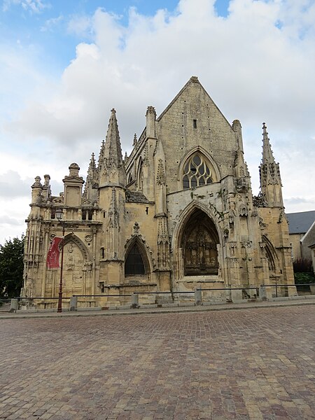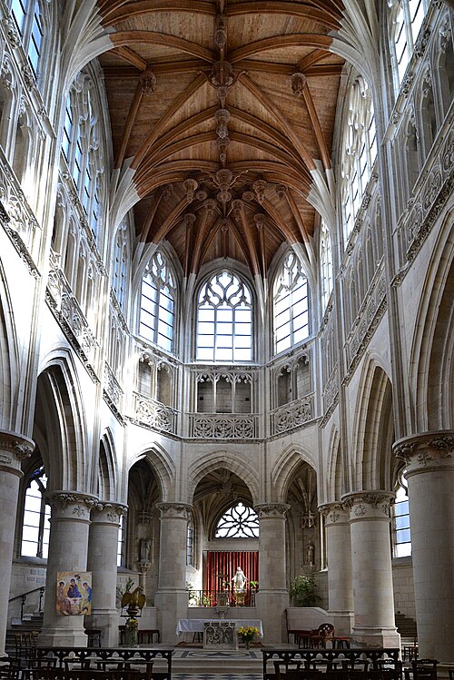L'église de la Trinité, autrefois dédiée à la Sainte-Trinité et aux Toussaints, se situe à Falaise dans le département du Calvados. Elle dépendait de l'ancien diocèse de Sées et relevait du patronage de l'abbaye de la Sainte-Trinité de Caen. Une première église est attestée au IXe siècle dans le premier foyer urbain ; elle fut remplacée par un édifice roman consacré en 1126, qui fut détruit lors du siège de 1204 pendant la conquête de la Normandie par Philippe Auguste. La reconstruction en style gothique aboutit à un transept daté du XIIIe siècle et l'ensemble de l'édifice est achevé en 1240. L'église subit de lourds dommages lors du siège de 1417 pendant la guerre de Cent Ans. La nef fut reconstruite entre 1438 et 1450. Les travaux du chœur commencèrent à partir de 1510 ; l'abside porte des datations pour 1539 et 1540, et le portail nord ainsi que les chapelles nord de la nef appartiennent à la première moitié du XVIe siècle, complétés par trois chapelles nord et un porche en 1545. Sur la croisée du transept s'élevait une tour-lanterne qui fut remplacée en 1821 par un toit à l'impériale coiffé d'une flèche polygonale, ensuite détruit. L'élévation intérieure a été remaniée au quatrième quart du XIXe siècle. L'édifice a été classé au titre des monuments historiques en 1889.