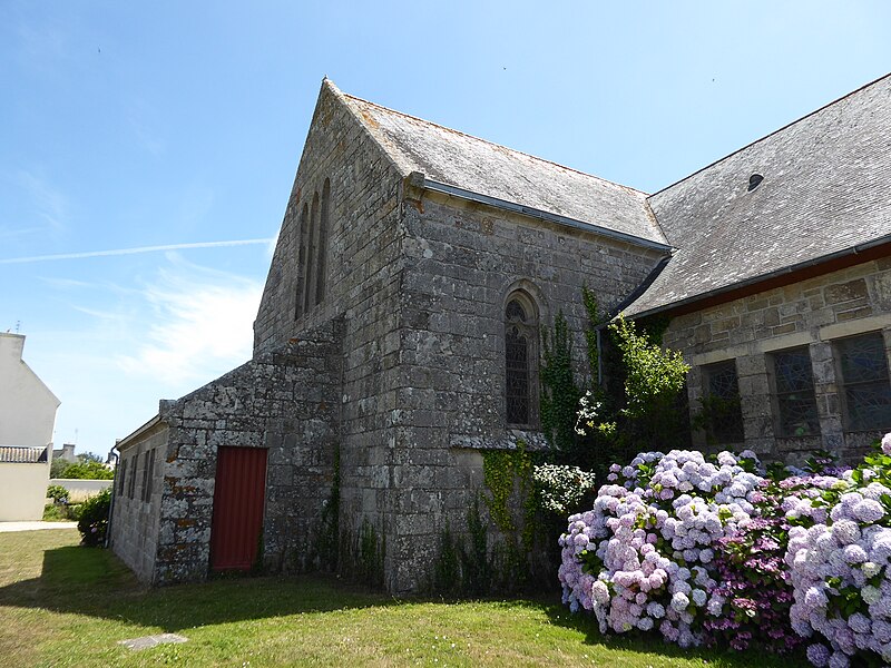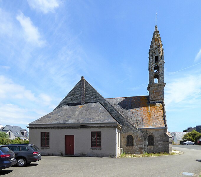 L'ancienne chapelle fut abandonnée au début du XXe siècle, après l'édification d'une nouvelle église plus proche du bourg. Elle servit ensuite de carrière pour la construction d'une école, à l'exception du pignon occidental et du clocher qui furent épargnés. Le clocher a été démonté puis remonté sur le porche de l'église neuve. Construit en pierres de taille, il comporte des parties sculptées.