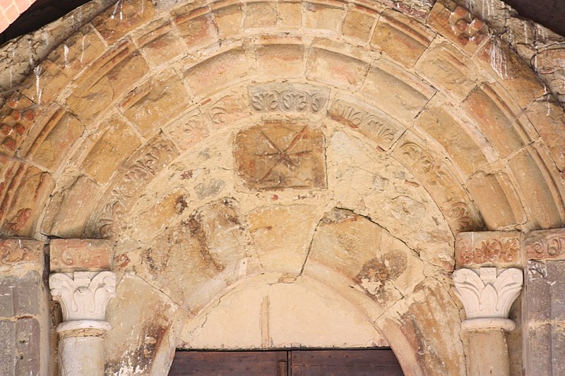 Petite église de plan simple, à nef unique et chevet plat. Deux chapelles ajoutées au nord forment un collatéral. Un clocher à bulbe s'élève à l'ouest. Le portail roman, situé au sud, est orné d'un chrisme et de chapiteaux sculptés ; il est précédé d'un porche daté de 1877. L'édifice a été remanié aux XVe et XVIIe siècles. Le mobilier en bois entourant l'autel, ainsi que la chaire à prêcher, datent du XVIIIe siècle, et le décor peint remonte au XIXe siècle.