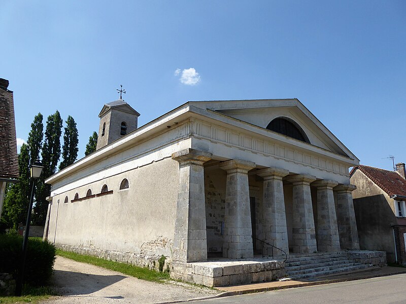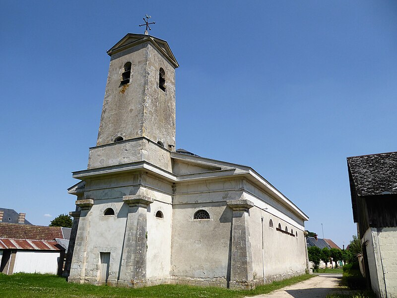 L'église Saint-Étienne est un édifice du XIXe siècle, classé monument historique, construit de 1810 à 1816 pour le vicomte Charles Henri Dambray sur les plans de l'architecte Nicolas Jacques Antoine Vestier, fils du peintre Antoine Vestier. Elle a été élevée à l'emplacement d'un bâtiment antérieur. Extérieurement, l'édifice adopte un plan rectangulaire et est précédé d'un péristyle scandé par six pilastres à section pyramidale qui soutiennent une large frise se prolongeant autour de l'église. Le devant du péristyle est coiffé d'un fronton triangulaire abritant une archivolte ; Vestier y réinterprète l'ordre dorique grec en reprenant des motifs du temple antique. Pour marquer cette adaptation, les piliers du péristyle sont dépourvus des cannelures habituellement associées à l'ordre dorique. Derrière le chevet, une tour fait office de clocher, adossée au chœur sur une base carrée. À l'intérieur, le chevet se termine par une abside circulaire couverte en coupole. L'ornementation intérieure repose principalement sur un mobilier conçu en harmonie avec l'architecture. Vers la fin du XIXe siècle, les surfaces intérieures furent revêtues d'une décalcomanie. Vestier s'est sans doute inspiré de la rotonde de la Villette de Claude-Nicolas Ledoux et, peut‑être, de l'église Saint‑Symphorien de Versailles, qui présentent des similitudes formelles, notamment le traitement du péristyle et l'adjonction d'un clocher au chevet.
