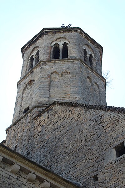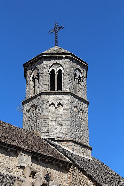 Cette tour, totalement aveugle à l'exception d'un guichet vers l'est, sert de pigeonnier et contient intérieurement plus de 300 boulins-nichoirs répartis sur plusieurs niveaux. L'édifice, gothique dans son langage, témoigne de fortes références au premier art roman. Sa conservation remarquable inclut notamment ses 26 baies, caractéristique exceptionnelle et probablement unique dans la région. Des ressources documentaires et des études, dont deux travaux de M. Babey ainsi que des notices et bases comme Mérimée, Clochers de France et l'Observatoire du patrimoine religieux, fournissent des informations complémentaires sur l'histoire et l'architecture de cette église.