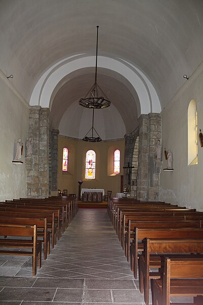 L'abside, datée du XIIIe siècle, comprend une travée voûtée en maçonnerie, deux petites chapelles latérales et un chevet à cinq pans. La nef est entièrement moderne.