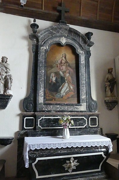 Sur le bas‑côté sud se trouve un retable dédié à la Vierge, daté de 1781 et centré par un tableau évoquant une présentation à la Vierge. Les verrières incluent des œuvres datées et signées : Martyre de sainte Barbe par Aleaume (1920), Martyre de Jacques Burin par Maume (1934) et une représentation de Jeanne d’Arc (détail) de 1989.