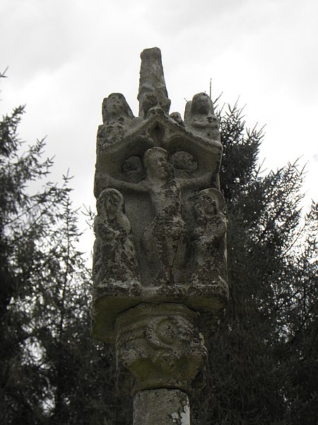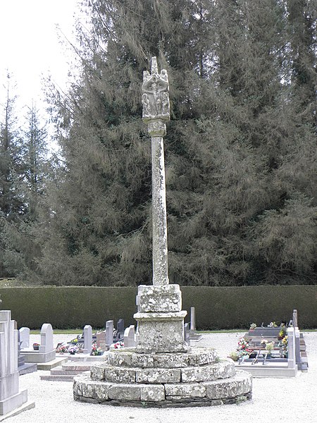 Le clocher, daté du XVIIe siècle, appartenait à l'abbaye de Bon-Repos (notice Mérimée PA00089615). La croix du cimetière remonte au XVIe siècle, malgré la date 1861 gravée sur son socle.