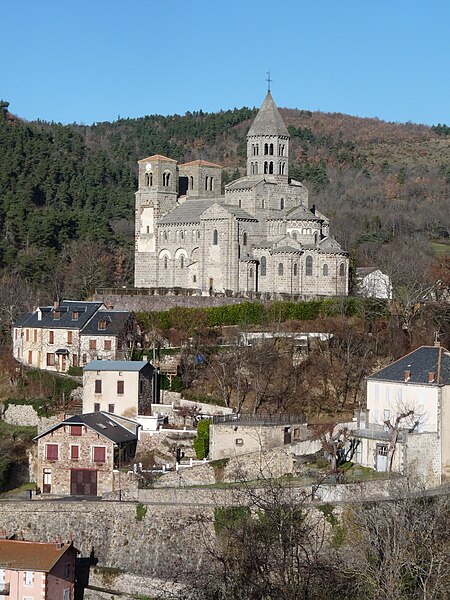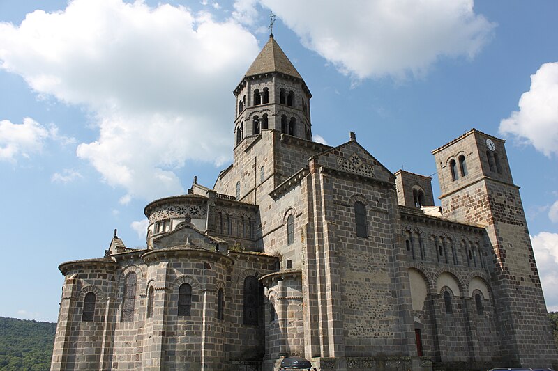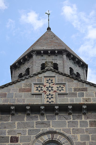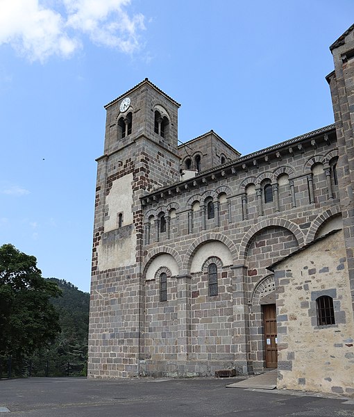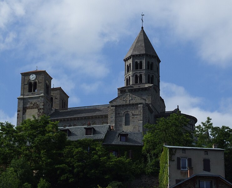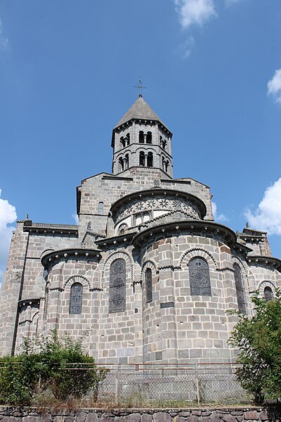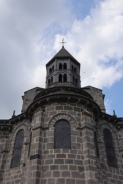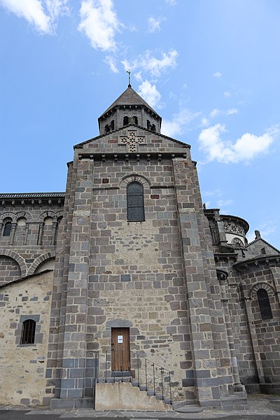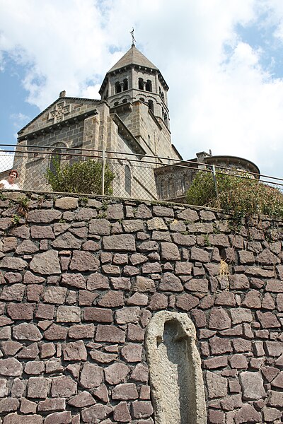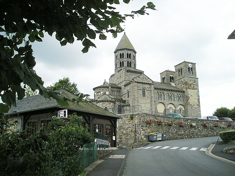 L'église Saint‑Nectaire, dédiée à saint Nectaire d'Auvergne, est un édifice roman auvergnat édifié principalement aux XIe et XIIe siècles, commencé vers 1080 et poursuivi entre 1146 et 1178. Située sur le mont Cornadore, elle figure parmi les cinq églises romanes dites « majeures » d'Auvergne. Classée au titre des monuments historiques en 1840, l'église a vu ses tours et son clocher restaurés au XIXe siècle après des destructions survenues en 1794. Vers 1874, Louis‑Clémentin Bruyerre, architecte des monuments historiques, a restauré les tours et le clocher. Construite en trachyte puis peinte, elle illustre la maîtrise de la combinaison des volumes propre à l'architecture romane auvergnate. Sa composition associe un narthex avec tribune, une nef voûtée en berceau à trois nefs avec bas‑côtés et tribunes, deux transepts à chapelles semi‑circulaires orientées, un chœur en cul‑de‑four entouré d'un déambulatoire et de trois chapelles rayonnantes, et une croisée surmontée d'un massif barlong puis d'un clocher octogonal. Le clocher à huit pans est coiffé d'une flèche en tuf, les parties supérieures du clocher et la flèche ayant été refaites au XIXe siècle. La façade occidentale, sobre, présente un portail en plein cintre et deux tours d'allure reconstituée au XIXe siècle, la tour nord étant plus large en raison de l'escalier en vis qu'elle renferme. Les façades latérales rappellent la basilique Notre‑Dame‑du‑Port et l'abbatiale d'Issoire, avec des fenêtres sous de grands arcs et des triplets de baies aveugles; la façade sud s'ouvre par un portail surmonté d'un tympan et d'une mosaïque polychrome. Le chevet, construit en étagements de volumes, se distingue par une polychromie plus sobre que celle d'Issoire, associant surtout des tons noirs, bruns et beiges, et par des corniches soutenues par des modillons à copeaux. Les chapelles rayonnantes, le déambulatoire et le chœur sont ornés de claveaux et de cordons de billettes, et chaque chapelle est adossée à un pignon couronné d'une croix de pierre. À l'intérieur, l'architecture se caractérise par la clarté des volumes, la simplicité décorative et l'élégance des proportions, avec une nef centrale voûtée en berceau deux fois plus haute que les bas‑côtés. Le narthex, intégré à la structure et percé d'une tribune au‑dessus, sert de vestibule et conduit à la nef par un portail en plein cintre; la galerie supérieure, accessible depuis la tour nord, s'ouvre largement sur la nef. La basilique à trois nefs présente des galeries au‑dessus des bas‑côtés qui rejettent les poussées de la voûte centrale vers les murs extérieurs, et ces galeries, accessibles par des escaliers étroits, n'étaient pas destinées à l'usage liturgique. Le transept et la croisée sont marqués par un dôme posé sur des trompes qui transforment le plan carré en octogone; quatre piliers carrés et des ouvertures jumelles assurent l'éclairage de la croisée. Le chœur, voûté en cul‑de‑four, était centré sur l'autel‑tombe et le reliquaire de saint Nectaire, mise en scène liturgique soulignée par six colonnes aux chapiteaux historiés. Les chapiteaux du déambulatoire, dont la restauration de 2006‑2007 a mis au jour des polychromies fragmentaires, offrent un riche programme sculpté tiré du Nouveau Testament, de l'Apocalypse et de la légende de saint Nectaire. Ils racontent notamment des épisodes de la Passion, la Résurrection, la Transfiguration, la vie et les miracles de saint Nectaire, ainsi que des scènes apocalyptiques; quelques chapiteaux portent aussi des sujets profanes ou symboliques. Le mobilier et le trésor comprennent des pièces médiévales, parmi lesquelles la Vierge Notre‑Dame du Mont‑Cornadore, un buste de saint Baudime en cuivre doré repoussé et une statue de saint Nectaire. En 1907, un groupe de voleurs surnommés les « Frères Thomas et compagnie » déroba plusieurs reliques et œuvres, dont le buste de saint Baudime et un bras reliquaire de saint Nectaire; ces pièces furent retrouvées et restituées après enquête et procès. L'église de Saint‑Nectaire demeure un des exemples les plus significatifs du roman auvergnat par la justesse de ses volumes, la qualité de sa sculpture et la richesse de son décor peint et sculpté.