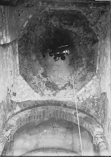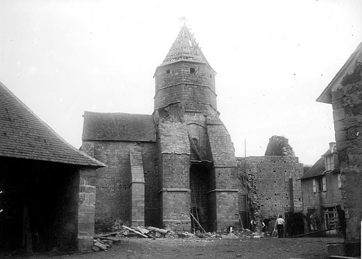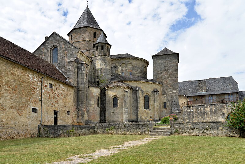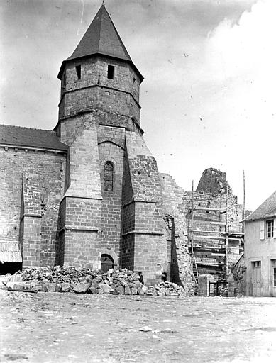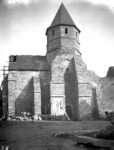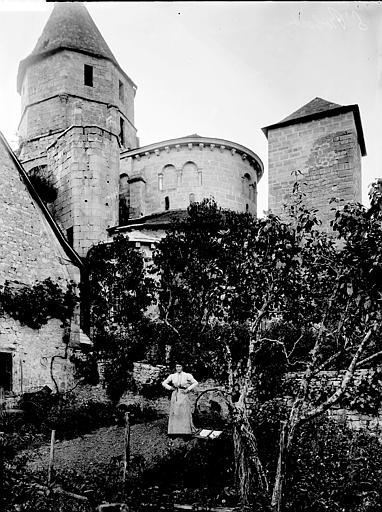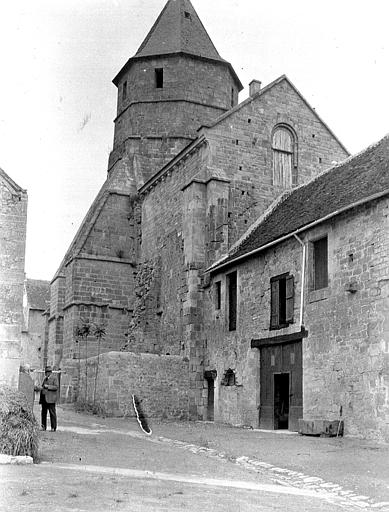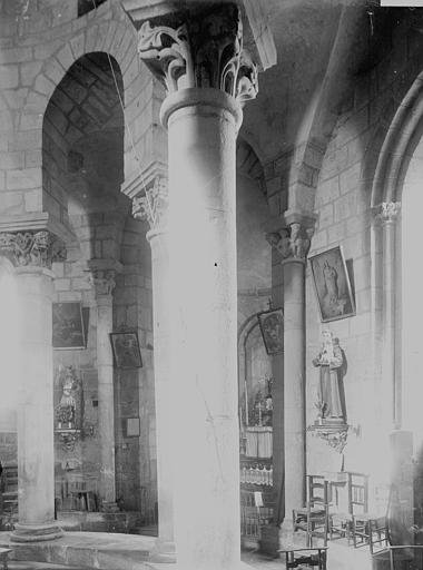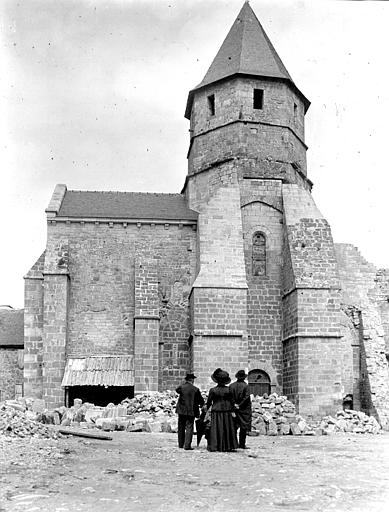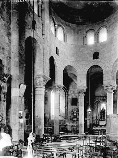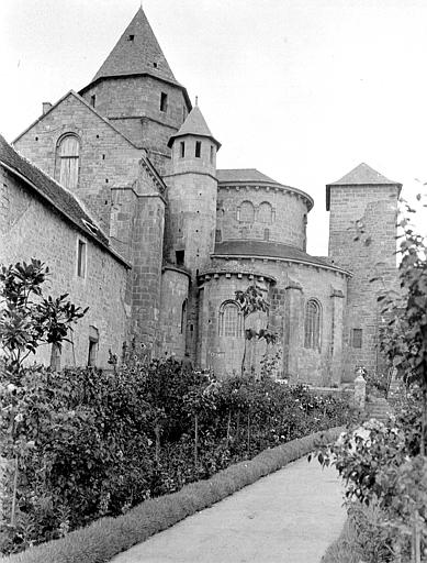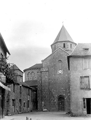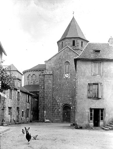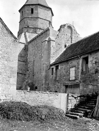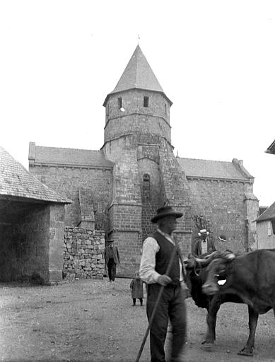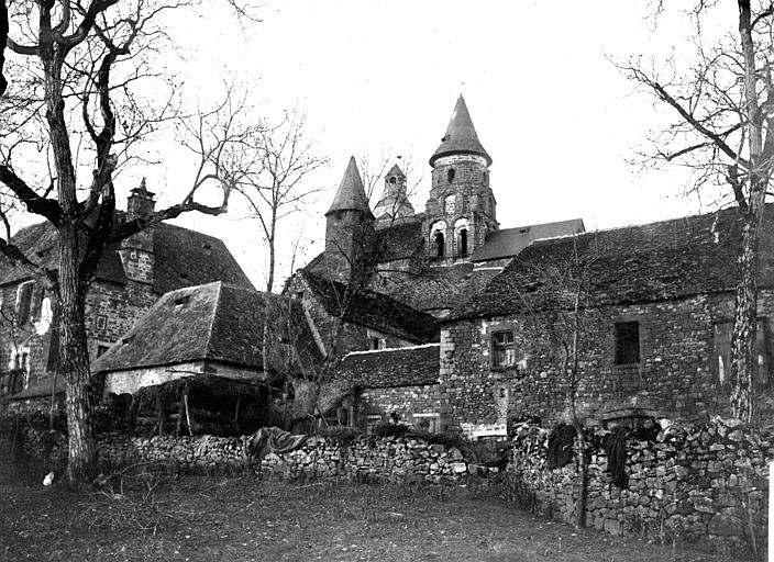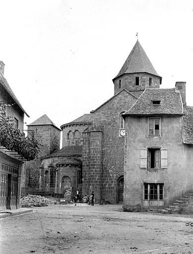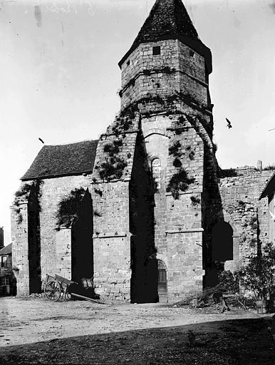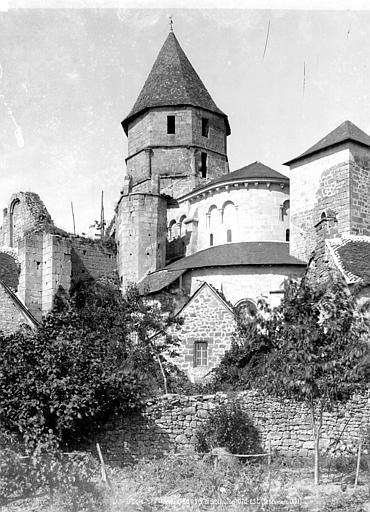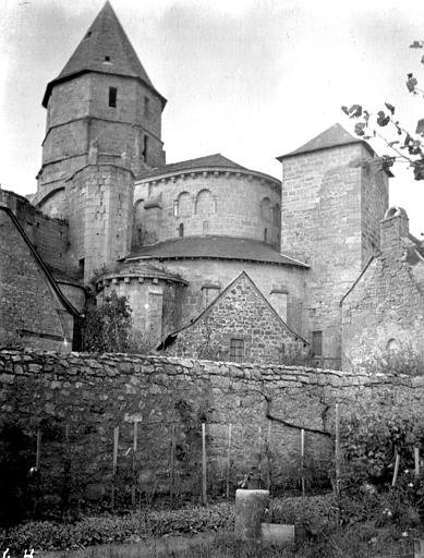 De l'église, il ne subsiste principalement que la partie orientale : la nef a disparu au cours des guerres de religion. Le transept, aux origines anciennes, est complété par un chevet du XIIe siècle ; le chœur est particulièrement développé et comprend un déambulatoire doté de trois chapelles rayonnantes, complété par deux absidioles orientées établies sur le transept. La largeur du mur extérieur du déambulatoire répond à celle de la nef charpentée, et le désir d'un chœur élevé explique son plan : le déambulatoire, peu large, est surmonté d'une tribune ouvert sur l'abside par cinq fenêtres. Le chœur mesure 14 mètres de longueur, ce qui laisse de longs murs entre les chapelles aménagés de larges fenêtres ; en vis-à-vis de chaque colonne du chœur, des colonnes en délit sont adossées au mur extérieur. Ce schéma, avec transept et chapelles rayonnantes, se retrouve dans plusieurs églises du Limousin, notamment au Dorat et à Beaulieu-sur-Dordogne. Pour soutenir la voûte du transept et le clocher de la croisée, des piles épaisses ont été ajoutées et la construction des absidioles a nécessité des renforcements. Environ soixante chapiteaux du décor primitif subsistent, dont cinquante et un restent en place ; leur rapprochement avec ceux de la collégiale du Dorat permet d'estimer une date de construction autour de 1130. Après l'effondrement de la nef, un mur a été édifié pour fermer la croisée en direction de l'ancien vaisseau.
