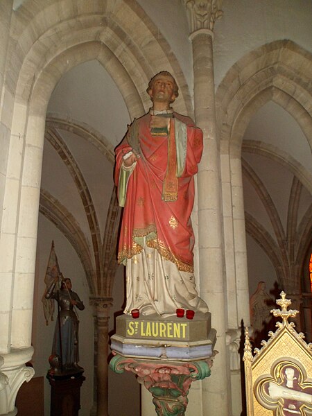 L'église Saint-Laurent de Saint-Sauveur-Lendelin est un édifice catholique situé dans le bourg éponyme, dans le département de la Manche en région Normandie. L'édifice, partiellement inscrit au titre des monuments historiques, présente un plan type des XIIIe-XIVe siècles : une nef à deux niveaux d'arcades et de fenêtres flanquée de bas-côtés couverts par un toit indépendant. Datée du milieu du XIIIe siècle, l'église est dotée d'un clocher-porche qui renferme, à l'étage, le logis du custos (sacristain). Le transept et le chœur ont été refaits à la fin du XIXe siècle. Le clocher fait l'objet d'une inscription au titre des monuments historiques par arrêté du 5 mai 1975. Parmi le mobilier se trouvent un lutrin, une chaire à prêcher et des fonts baptismaux du XVIIIe siècle, une statue de sainte Barbe du XVe siècle, ainsi qu'une statue de Saint Louis. Un vitrail daté de 2002 et signé J.P. Rivière est dédié au Concordat de 1801 et au prince Lebrun.