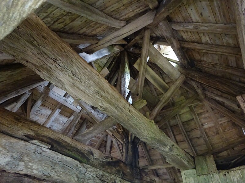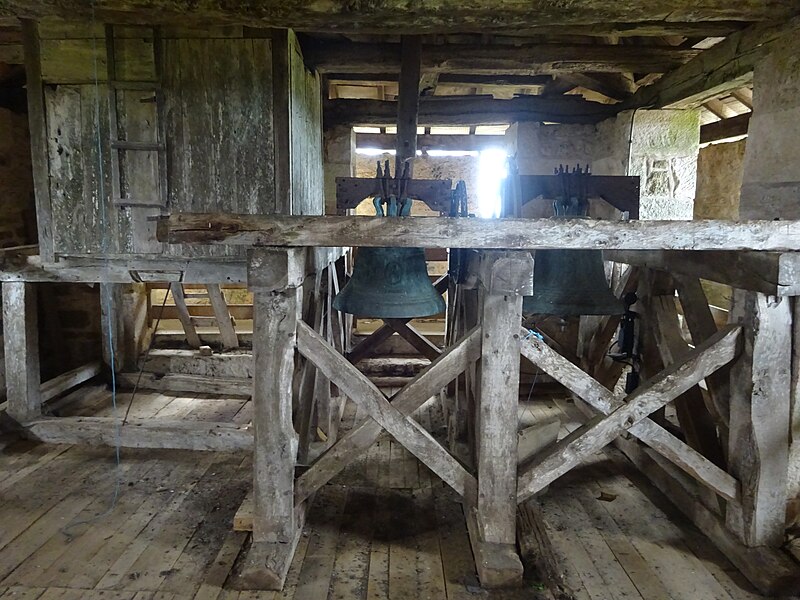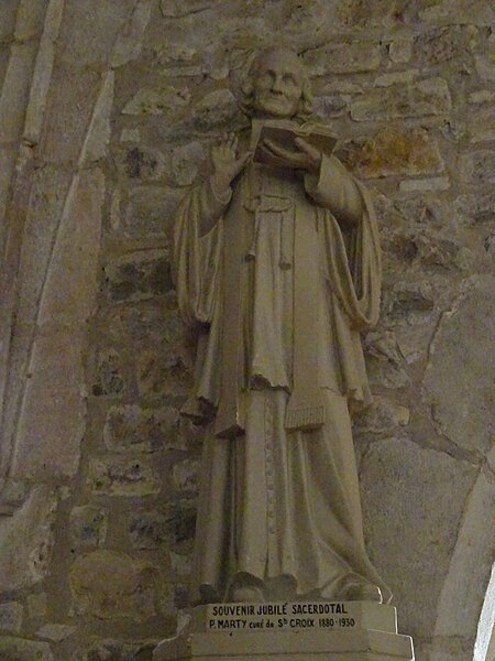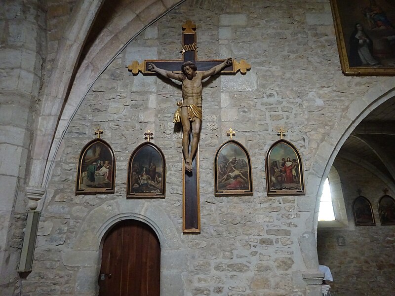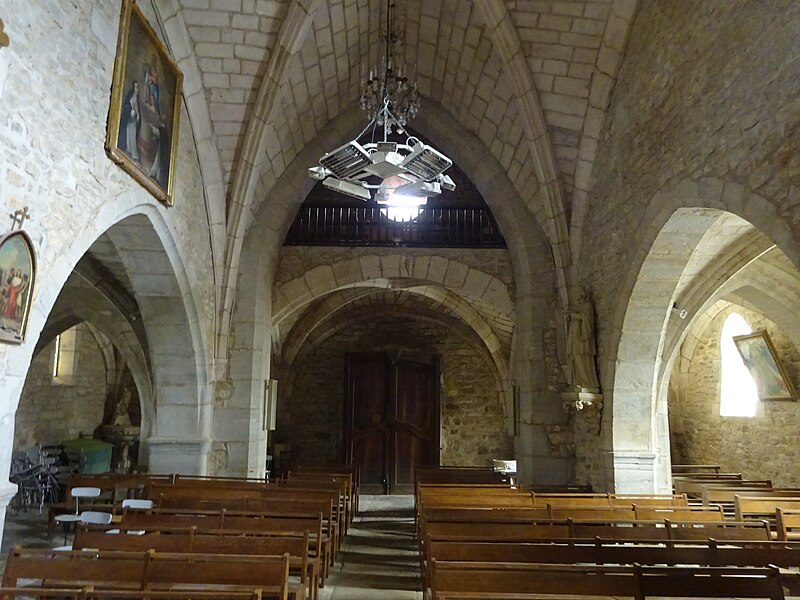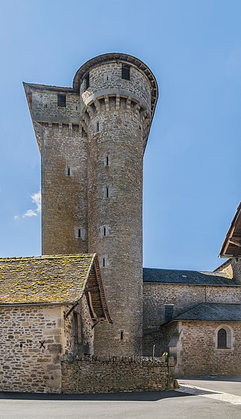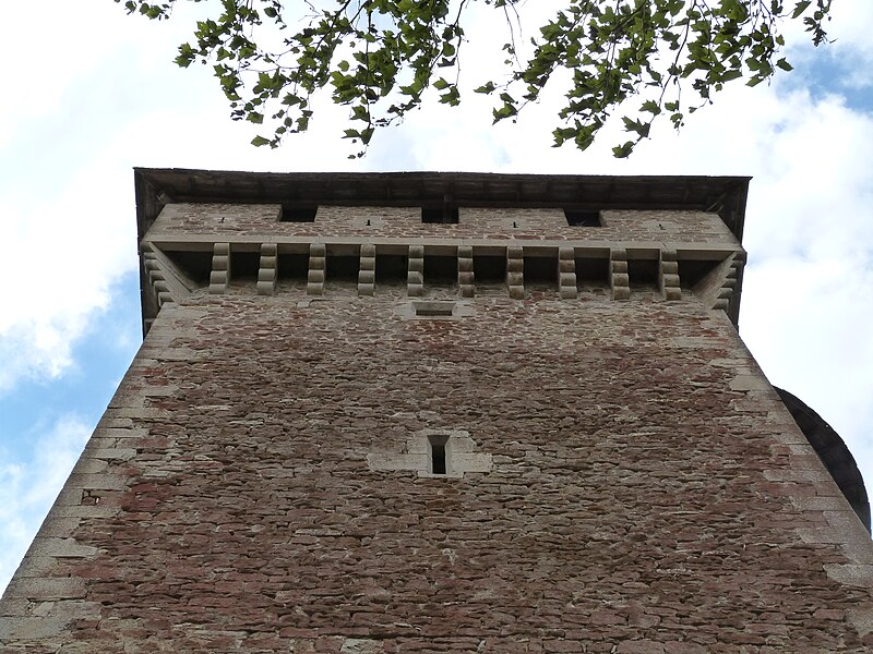 L'église Sainte-Croix de Sainte-Croix, située dans le département de l'Aveyron en France, relève de deux grandes phases de construction. La nef primitive, à l'origine unique, a été agrandie par l'ajout de deux bas-côtés à la fin du XVe siècle. Le clocher-donjon, conçu de la base au sommet pour servir de défense et de refuge à la population, intègre la première travée de l'église, formant abside, comme rez-de-chaussée du dispositif. Il comportait cinq étages habitables, séparés par des planchers, tandis qu'un sixième niveau, destiné à la défense, était pourvu de mâchicoulis en encorbellement sur les quatre faces et autour de l'escalier à vis. L'édifice, primitivement érigé au XVe siècle, est classé au titre des monuments historiques en 1931. Des illustrations et des notices sont consultables sur Wikimedia Commons, la base Mérimée, Clochers de France, l'Observatoire du patrimoine religieux et sur plusieurs portails consacrés au patrimoine et à l'architecture chrétienne.