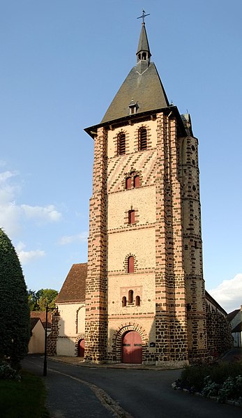 La tour de l'église a été élevée vers le milieu du XIIe siècle par Hugues II, seigneur de Châteauneuf et de Senonches. Elle est construite en grison. À l'origine, elle servait de poste d'observation et de forteresse pour protéger le château. La tourelle octogonale abrite un escalier en spirale de 122 marches et comporte trente-deux regards ou meurtrières disposés pour la défense du donjon en cas de siège. À l'extérieur, la tour présente cinq étages, avec des fenêtres romanes dont la forme varie à chaque niveau. L'église se trouvait à l'intérieur de la place, protégée par des fossés, et constituait elle-même un rempart.