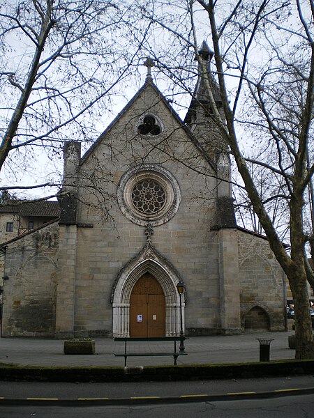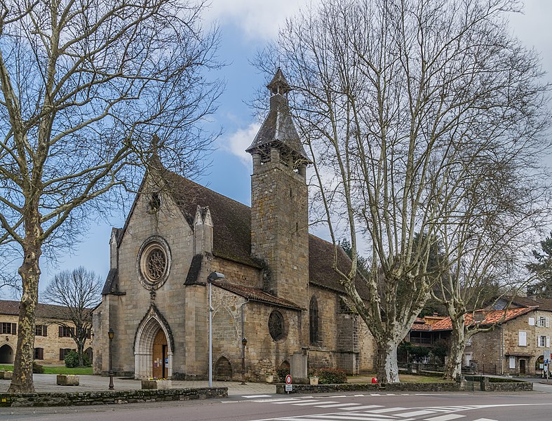 L'église des Carmes, ou église Saint-Thomas-Becket, se situe à Figeac (Lot, Midi-Pyrénées) et constitue la plus petite église de la commune. La première église du barri d'Aujou fut fondée au XIIe siècle par les abbés de Saint-Sauveur pour desservir ce quartier ; elle était dédiée à saint Thomas Becket, assassiné en 1170. Initialement située à l'extrémité du barri, elle fut transférée en 1295 à l'intérieur des remparts, sur le territoire de la paroisse de Notre-Dame-du-Puy, donnant naissance au quartier Saint-Thomas ; cette église disparut à la Révolution. L'église actuelle faisait partie d'un ensemble conventuel de carmélites attesté au XIIIe siècle, le couvent des Carmes étant mentionné en 1265 parmi les bénéficiaires de legs. Après la prise de la ville par les protestants en 1576, la chapelle, le cloître et la salle capitulaire furent ruinés ; des travaux modestes de restauration eurent lieu après la reprise de la ville par les catholiques en 1622. Le monastère fut ensuite abandonné à la Révolution, à l'exception de la chapelle devenue église paroissiale du barri d'Aujou. En 1871, l'abbé Lacarrière entreprit une restauration importante : le chevet a conservé son aspect médiéval et il subsiste des vestiges d'enfeus, tandis que la façade occidentale, la grande verrière orientale et les voûtes furent refaites au XIXe siècle. Un chapiteau roman provenant de l'église de Saint-Sauveur sert de bénitier. Les bâtiments du couvent ont été restaurés en 1982 lors de l'aménagement de la Cité administrative ; le portail de l'ancienne salle capitulaire, daté de la fin du XIIIe ou du début du XIVe siècle, constitue l'élément le plus remarquable. L'édifice est inscrit au titre des monuments historiques depuis le 9 février 1993 et douze tableaux des apôtres y sont référencés dans la base Palissy. D'un point de vue architectural, l'église, d'origine gothique, a été fortement remaniée à la fin du XIXe siècle : elle se compose d'une large nef dont les voûtes sur croisées d'ogive, à liernes et tiercerons, retombent sur des piles fasciculées ; ces voûtes, ainsi que la façade ouest et la grande verrière orientale, ont été refaites au XIXe siècle. La travée occidentale est flanquée au nord et au sud de deux chapelles latérales voûtées sur croisées d'ogive datant du XIVe siècle, la chapelle sud étant jouxtée à l'est par la tour qui sert de clocher. L'église conserve au sud l'emplacement de l'ancien cloître du couvent.