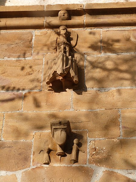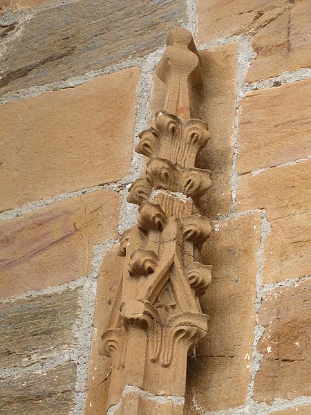 L'édifice, daté des XIIe et XIIIe siècles, est voûté en plein cintre et résulte de l'adjonction d'une église gothique sur une construction romane. Le portail ogival du XIVe siècle s'ouvre sous un porche à arcature romane ; il est formé d'un arc en ogive dont les jambages sont ornés d'acrotères ou de pinacles engagés à feuilles découpées. Au‑dessus de la porte, une console entourée de petits personnages supporte un dais décoré d'accolades et de trilobes.