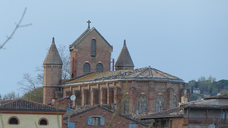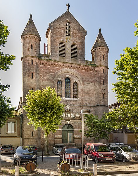 La confrérie des Pénitents Blancs, fondée à Rabastens vers 1600, siégeait d'abord dans l'église Saint-Michel. En 1616, après le don par un sieur Gabriel Dumas de sa maison et de son jardin situés au bourg Soubira, l'église des Pénitents Blancs fut construite sur cet emplacement. De plan approximativement rectangulaire, l'édifice présente une façade encadrée par deux tourelles d'angle abritant les escaliers menant au clocher. Elle est percée d'une large baie triple sous un arc de décharge en plein cintre. La porte, principal élément décoratif, occupe tout l'espace entre les montants de cet arc. Les piédroits en briques sont moulurés d'un quart-de-rond entre deux filets, et des assises de pierre marquent le niveau des bases des pilastres latéraux et celui des chapiteaux des piédroits. Les pilastres latéraux, jumelés, sont ornés de chapiteaux corinthiens. Il est possible que ce portail monumental ait été construit ou aménagé après 1616, mais la transformation des boulevards a rendu cette porte inaccessible avant 1784.