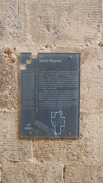 La chapelle de Rousset (capella de Rosseto) est mentionnée au XIVe siècle dans le pouillé de Die. Lors d'une visite pastorale de 1509, deux églises paroissiales y sont signalées : Sainte-Marie-Magdeleine, à l'intérieur des murs, et Saint-Mayeul, dans le cimetière hors les murs. Sainte-Marie-Magdeleine, située près du logis du prieuré, semble avoir été la chapelle seigneuriale, les premiers seigneurs de Rousset étant les prieurs, tandis que Saint-Mayeul provient à l'origine d'un prieuré clunisien attesté en 1337. En 1664, la visite pastorale relève que, faute d'entretien de Saint-Mayeul, le culte se déroule à Sainte-Magdeleine, qui comprend alors deux chapelles en vis-à-vis : Notre-Dame de Grâces, à droite de la nef, et Notre-Dame de Pitié, à gauche. La chapelle Notre-Dame de Grâces avait été fondée en 1538 par le prieur Charles de la Baume ; la chapelle de gauche, dont la clé de voûte porte les armes des Alrics de Cornillan et qui relève des seigneurs laïques, possédait une porte nord en arc surbaissé ornée de moulures, peut‑être refaite en 1633 — des vestiges en ont été mis au jour lors d'une démolition en 1902. Ces chapelles ont été intégrées lors d'une reconstruction partielle de l'édifice au début du XVIIIe siècle. Les travaux, commencés en 1716, comprennent l'agrandissement de la nef et le prolongement des chapelles, ce qui entraîne la démolition d'un local proche du prieuré appelé l'hôpital, fondé en 1587. De 1733 à 1735, selon les plans de Vincent Julian, entrepreneur à Valréas, Antoine Ulo, maître maçon de Rousset, construit le chœur à cinq pans, la sacristie et la chapelle de la confrérie du Saint-Rosaire, du côté de la bise. En mai 1736, l'église est consacrée sous le vocable de Saint-Mayeul par Mgr Daniel Joseph de Cosnac, évêque de Die. L'édifice comprend alors quatre chapelles : à droite, celles du Saint-Rosaire, finalement occupée par la confrérie du même nom, et de Notre-Dame de Grâces ; à gauche, celles de Saint-Joseph et de Saint-Vincent, cette dernière ayant été anciennement dédiée à Notre-Dame de Pitié. En 1737, l'achèvement se marque par le couvrement de la nef et l'édification du clocher ; la même année, la tour de fortification près du chœur est cédée à la confrérie du Saint-Sacrement. La façade est réparée en 1739 et un arc d'étrésillonnement est établi entre l'église et le prieuré. Le porche peu profond à arc brisé et les deux baies inférieures du clocher réutilisent des pierres de l'église primitive et de l'hôpital, peut‑être aussi des ruines de Saint-Mayeul ; sur le retour gauche, une pierre en remploi placée à l'envers porte l'inscription latine « l'année du seigneur 1441 et le 7e jour du mois de mai fut commencée la présente église », inscription cohérente avec le style gothique de la chapelle Saint-Vincent. Des corbeaux figurés romanes remployés sur l'élévation gauche attestent l'ancienneté des deux églises. Au XIXe siècle, des aménagements sont réalisés : un canal est creusé au nord pour assainir la chapelle Saint-Joseph en 1842, l'angle sud de la façade est supprimé lors de la démolition de la porte de ville en 1869, un petit corps en appentis est ajouté au sud en 1877 par le maçon Ferdinand Guille, qui fait construire en 1879 le perron ovale devant le porche. Les travaux d'entretien se poursuivent au XXe siècle et la façade a été restaurée en 2000.