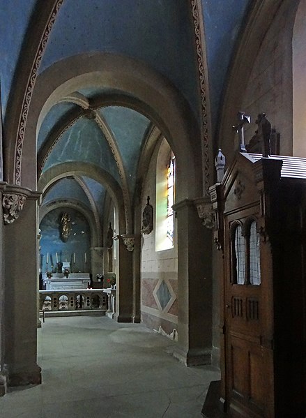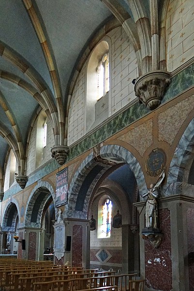 L'église du Martyre-de-Saint-Jean-Baptiste, située à Seyches (Lot-et-Garonne), a été reconstruite à la fin du XVIIe siècle sur un plan à trois nefs avec chœur à chevet plat. L'édifice précédent, situé hors les murs, fut ruiné au début des guerres de religion; la communauté paroissiale, alors nombreuse et en partie protestante, dut se replier dans une maison de la ville vers 1580 sur autorisation de l'évêque d'Agen Janus Frégose. Des réparations furent entreprises en 1666, mais sans résultat satisfaisant, et Marie de Majance, veuve de Jean de Mosnier, prit à son compte la reconstruction achevée en 1689 et consacrée par l'évêque Jules Mascaron le 9 avril 1690. En 1880, on voûta l'église en brique et plâtre sur croisées d'ogives reçues sur de gros culots, remplaçant ainsi les lambris peints d'origine, à l'exemple de la chapelle Saint-Benoît à Marmande. Les clés de voûte sculptées témoignent de cette phase de construction et de transformation. La suppression du plafond lambrissé a entraîné la disparition d'un important décor liturgique mentionné dans un document épiscopal du 20 août 1689; il subsiste toutefois un grand tableau représentant la Décollation de Saint-Jean-Baptiste, inscrit à l'Inventaire supplémentaire en 1975. L'église ne possède pas de clocher propre : une ancienne porte de la ville, située à proximité, a été aménagée pour remplir cette fonction. Dans les années 1930, une vaste campagne décorative a concerné aussi bien les vitraux des collatéraux, exécutés par l'atelier Thomas de Valence (Drôme), que la peinture murale; le peintre d'origine italienne Carlo Masutti réalisa en 1935-1936 la peinture du mur axial du chœur consacrée à la Décollation de Saint-Jean-Baptiste ainsi que des décors de draperies, de faux-marbres et de fausses pierres dans le chœur, la nef et les bas-côtés. L'église a été inscrite au titre des monuments historiques le 26 novembre 1998.
